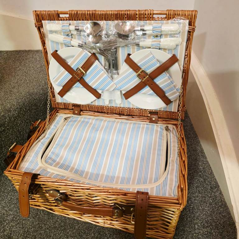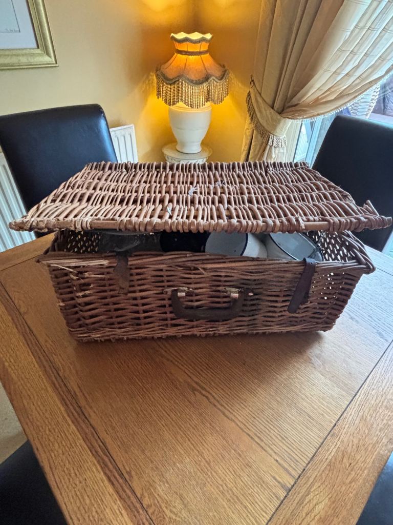 Antler Picnic Basket / Hamper with original plates, cutlery etc