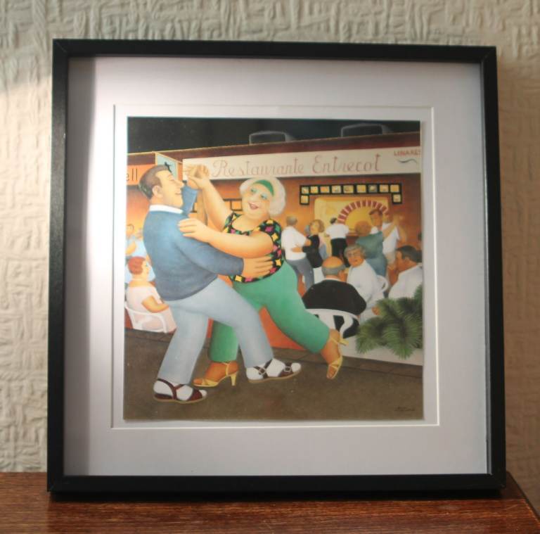 06. A framed original print from a book DANCING featuring BERYL COOK Approx print size 7” x 7” Available UNFRAMED posted or collected for £7.