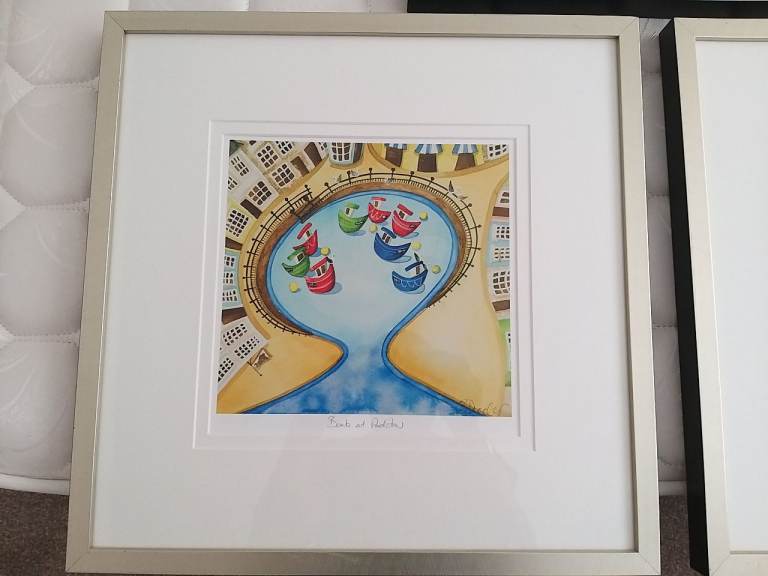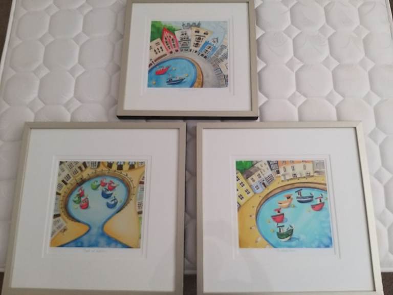 A collection of 3 Padstow & Dartmouth coastal prints in matching silver and black frames