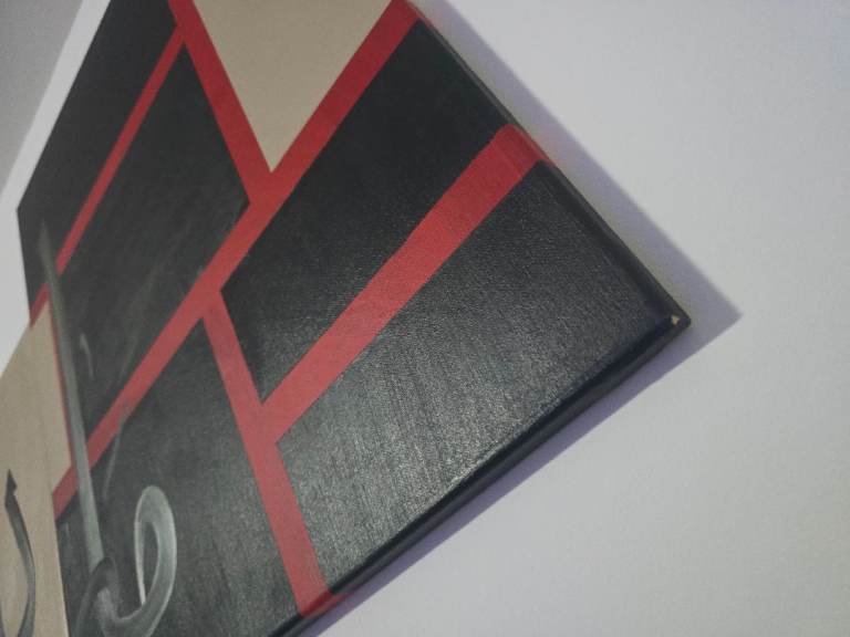 A three-panel wall art piece is available, featuring Arabic calligraphy in shades of red, black, beige and silver writing. The calligraphy conveys the meaning of "Mashaallah."