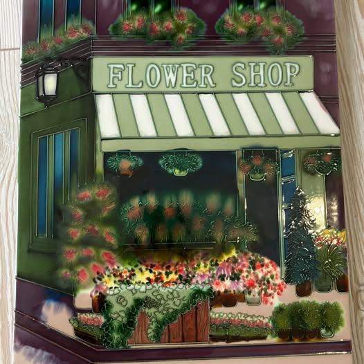 Ceramic Tile Picture/ Plaque titled flower shop approx 350 x 280