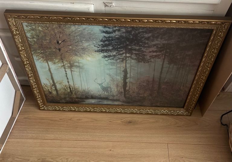 Lovely picture behind glass in a Gold ornate frame .