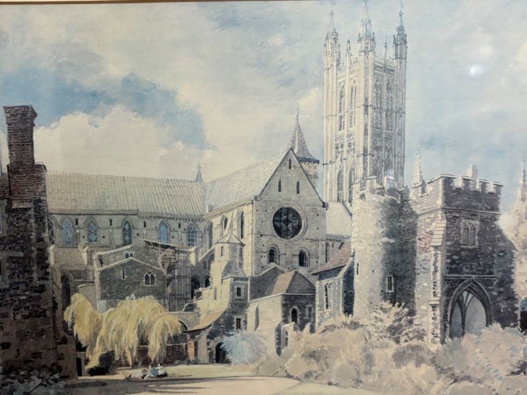 Beautiful framed artwork titled “Canterbury Cathedral from the Dean’s Garden”, reproduced from a painting by John Doyle R.W.S.