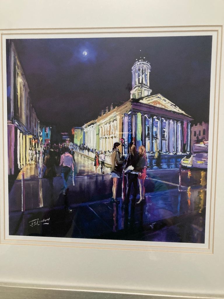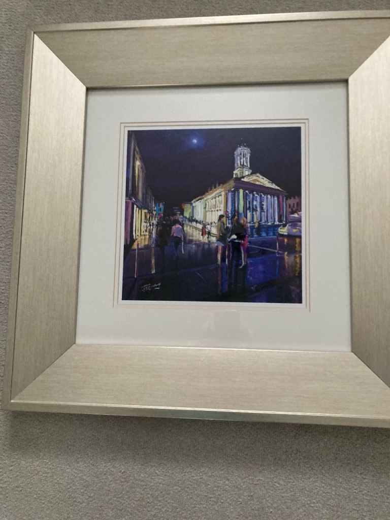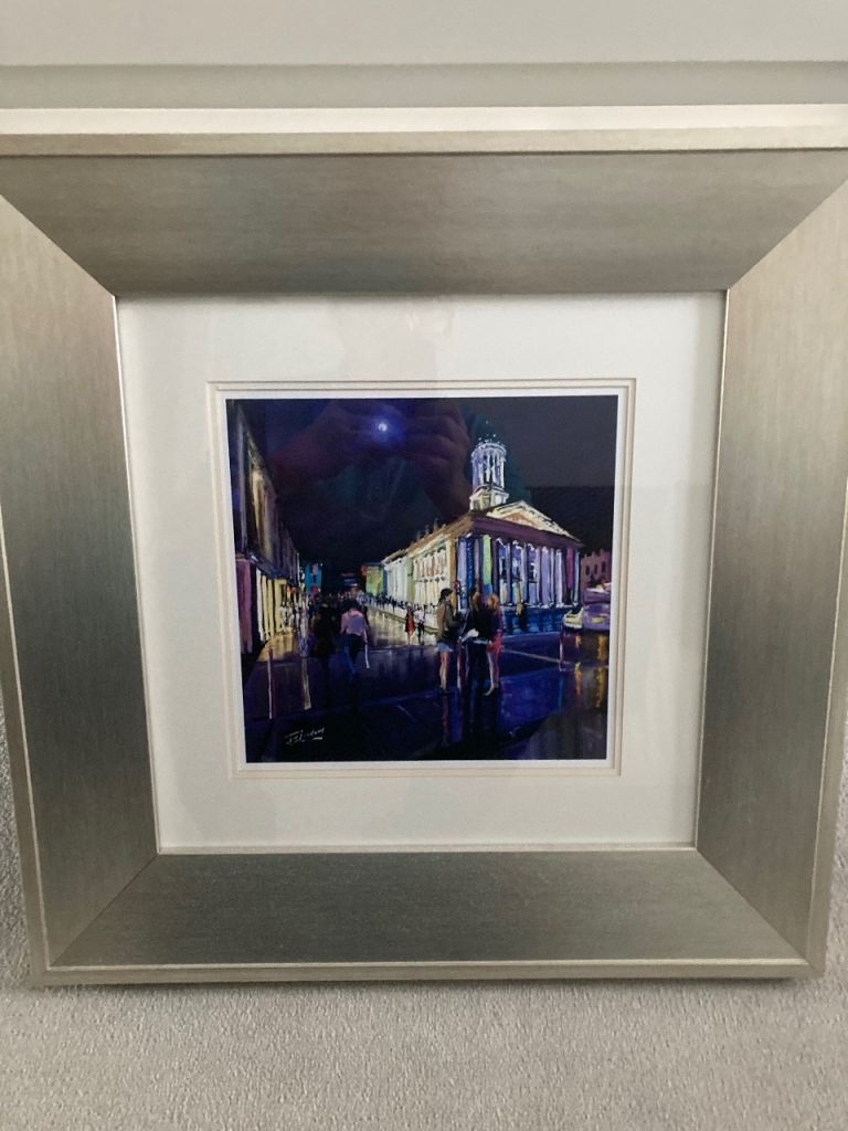 Picture of Modern Gallery and out door life in Glasgow city centre in champagne frame 55cm x 55cm