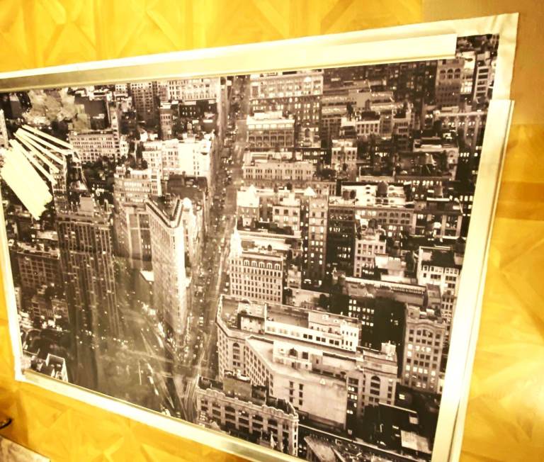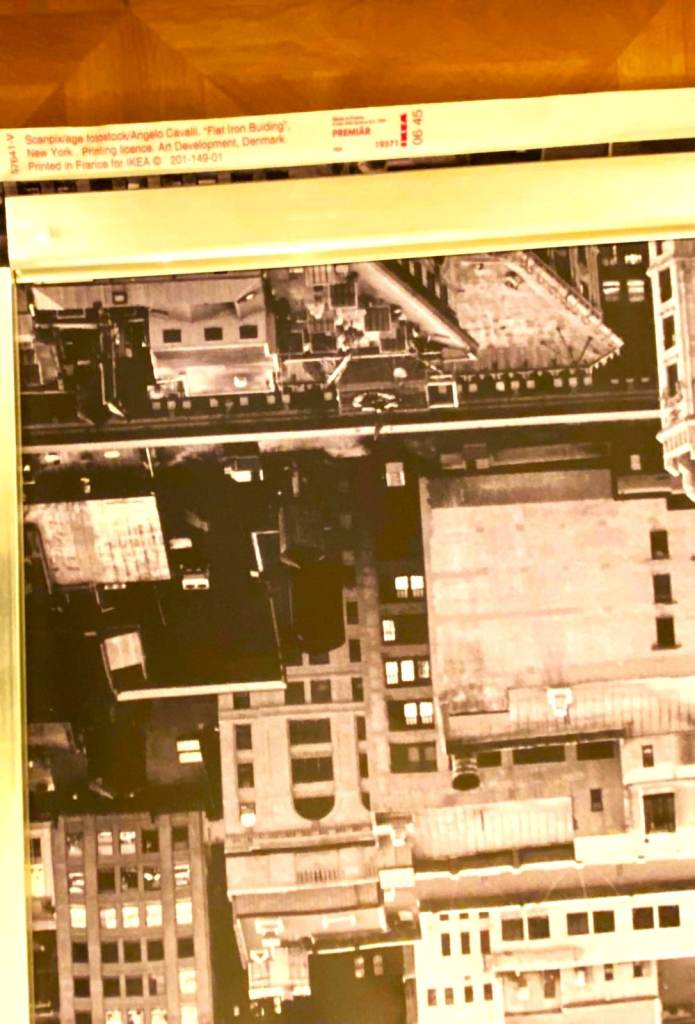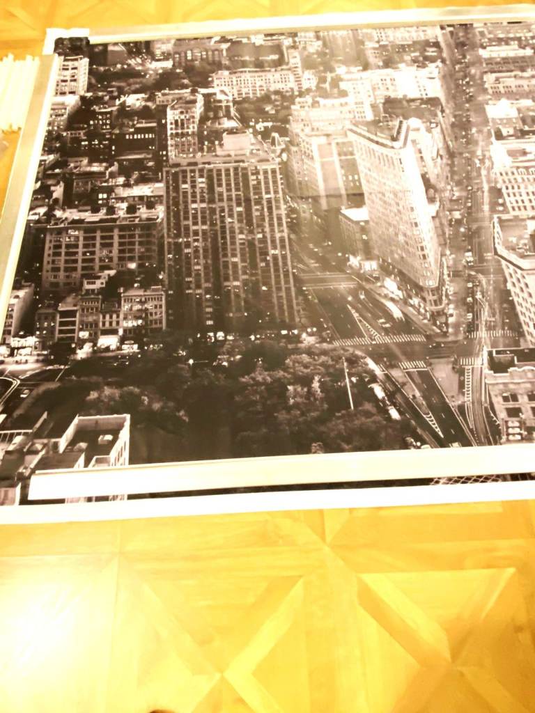 The product is a large aerial photo of Manhattan and the flat iron building measuring 200 x 140 cm (6.6 FT x 4.6 FT).