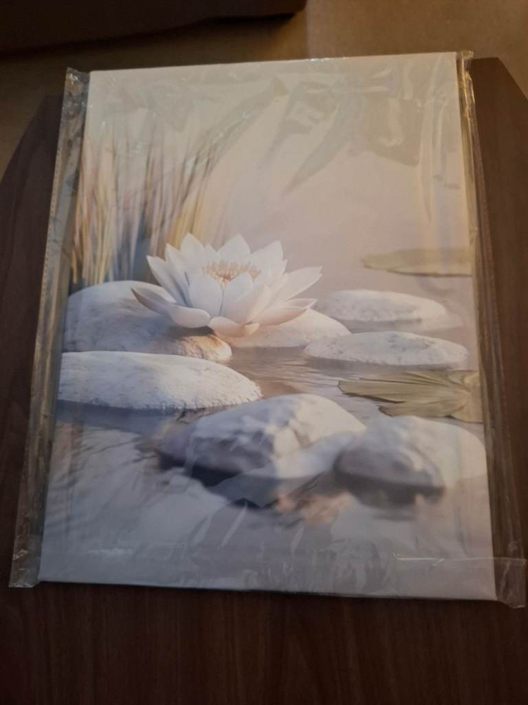 The canvas is clamped into aluminium frame to give tension and flat surface.