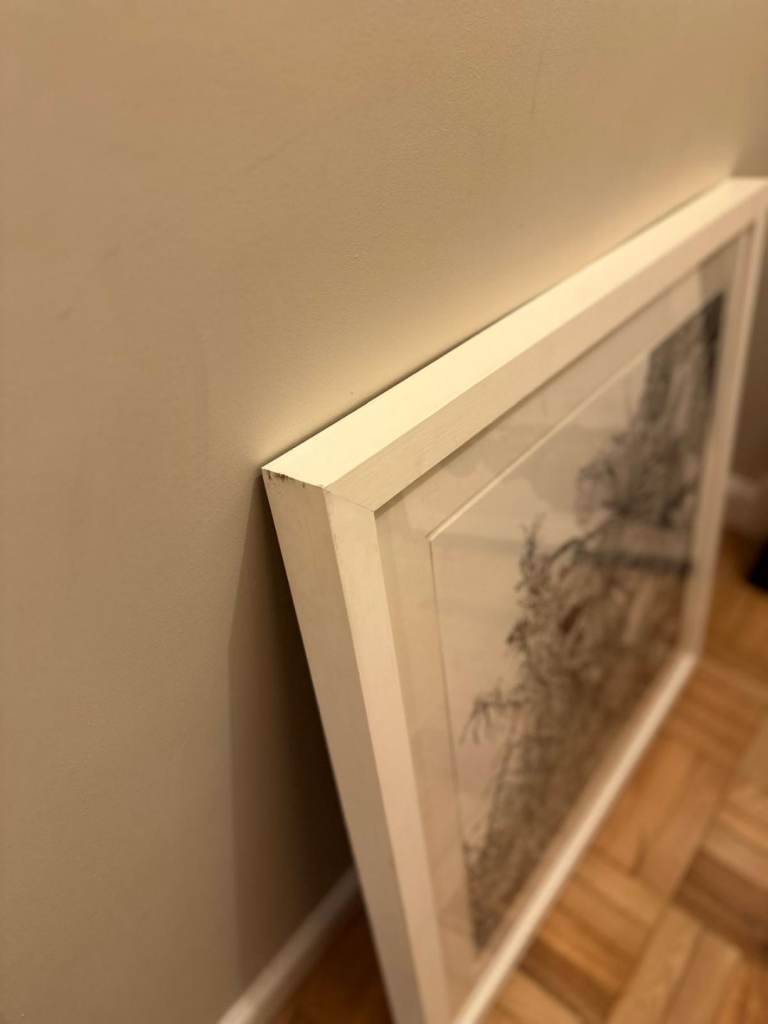 Large white wooden frame flowers picture with glass
