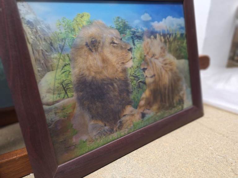 3d dimensional picture of lions. 4 different pictures when you look at different angles