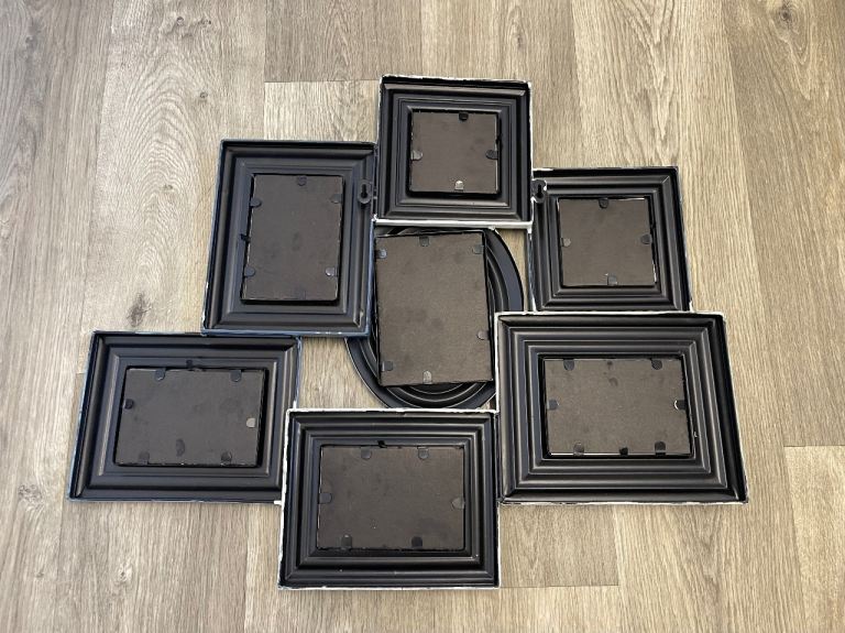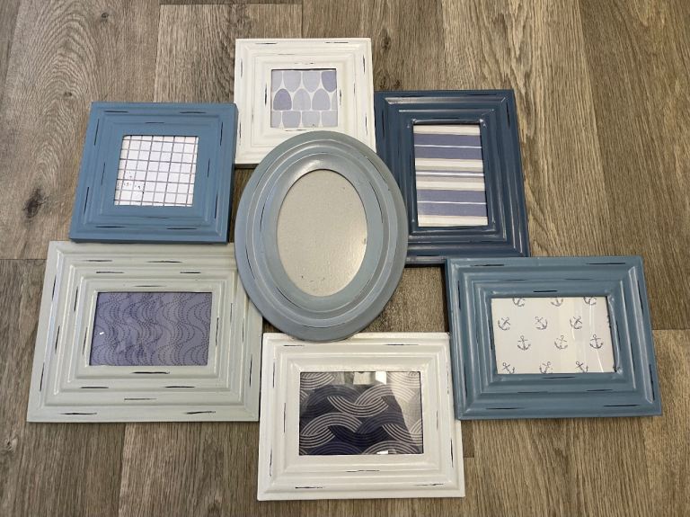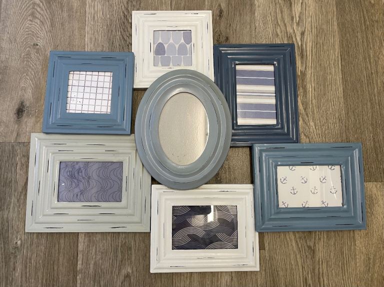 I bought this from Next holds 7 pictures. Shabby chic style grey/blue/white