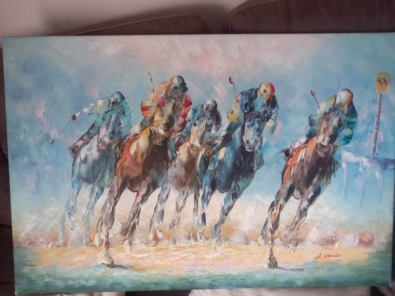 Mounted in a white-gilt frame which measures approx 80cm x 50cm
