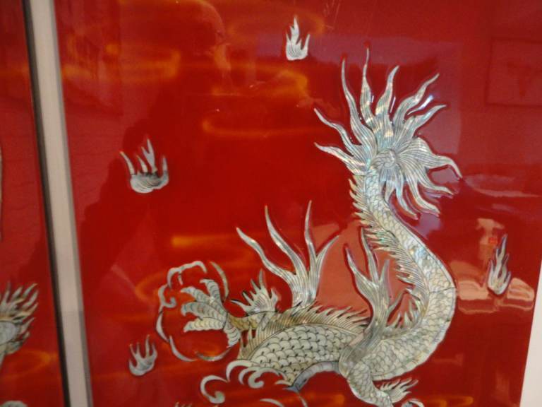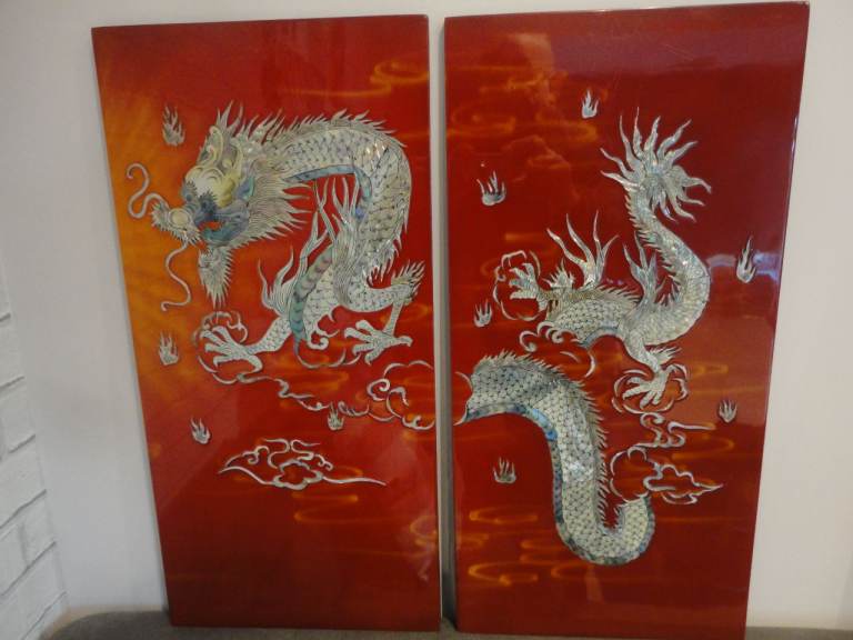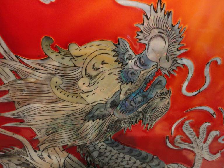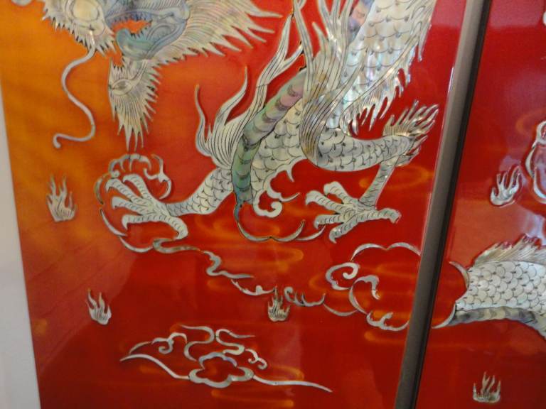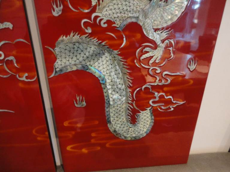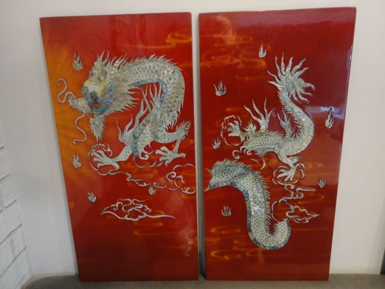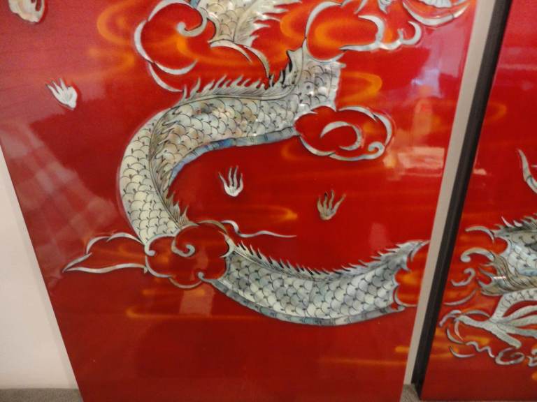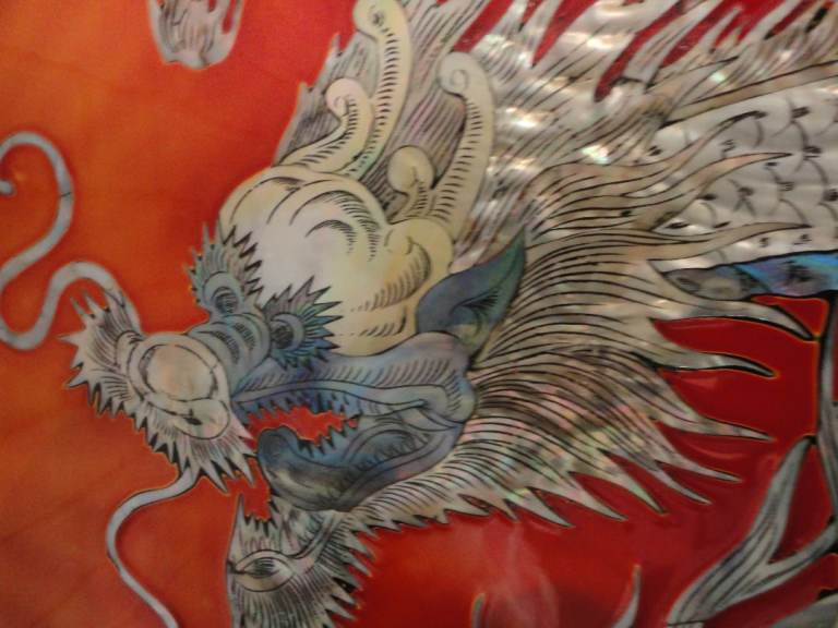 Oriental mother of pearl dragon lacquered wall plaque pictures