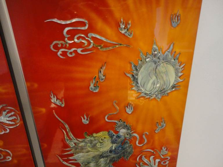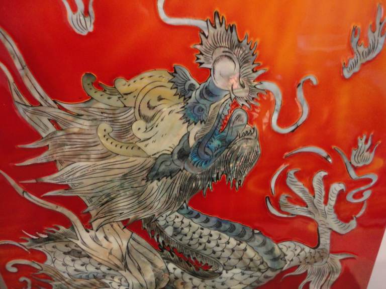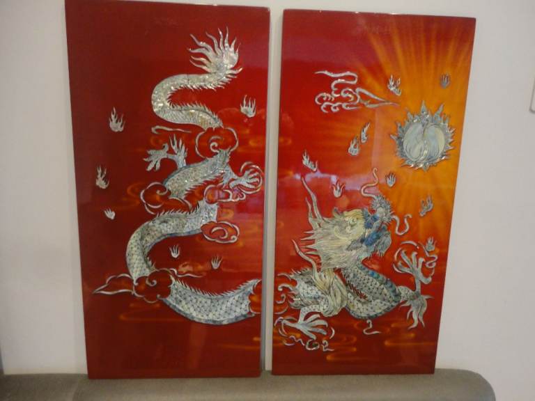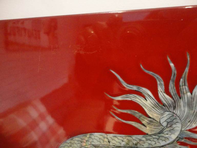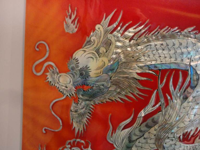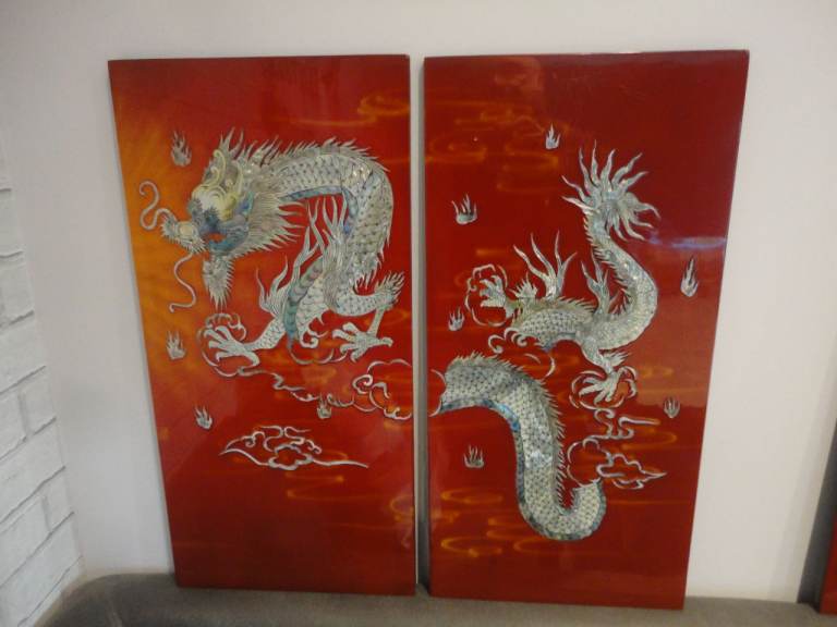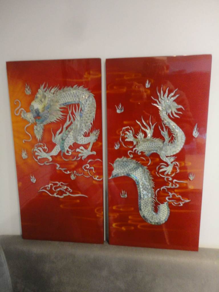 Oriental mother of pearl dragon lacquered wall plaque pictures