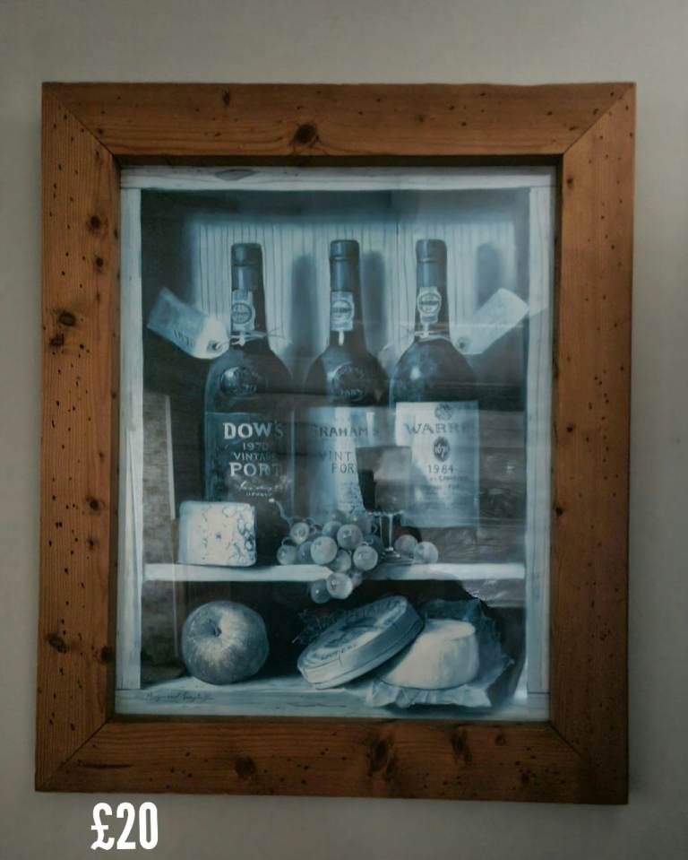 Stressed Pine Framed Wine & Cheese Black And White Printed Picture