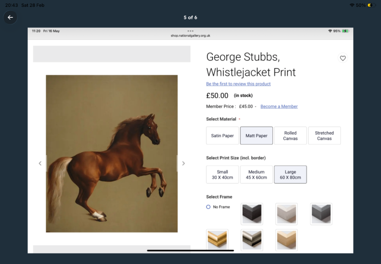 The last photo which forms no part of the item for sale illustrates the cost of the same image if buying from the National Gallery direct as I did.