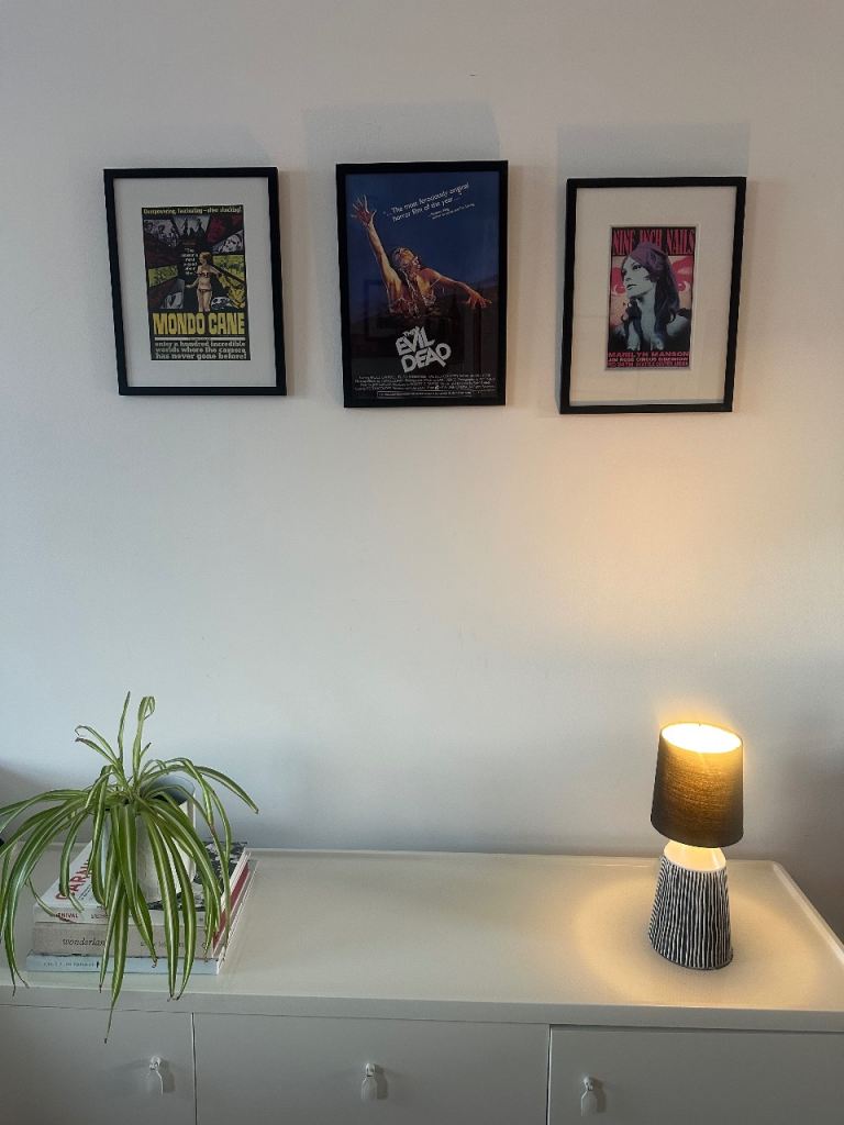 3 Classic Film posters - The Evil Dead, Mondo Caine and Nine Inch Nails. All 3 professionally framed. Measurements: 42cm x 32cm. A great gift for any film enthusiast. Collection only Notting Hill/Ladbroke Grove.