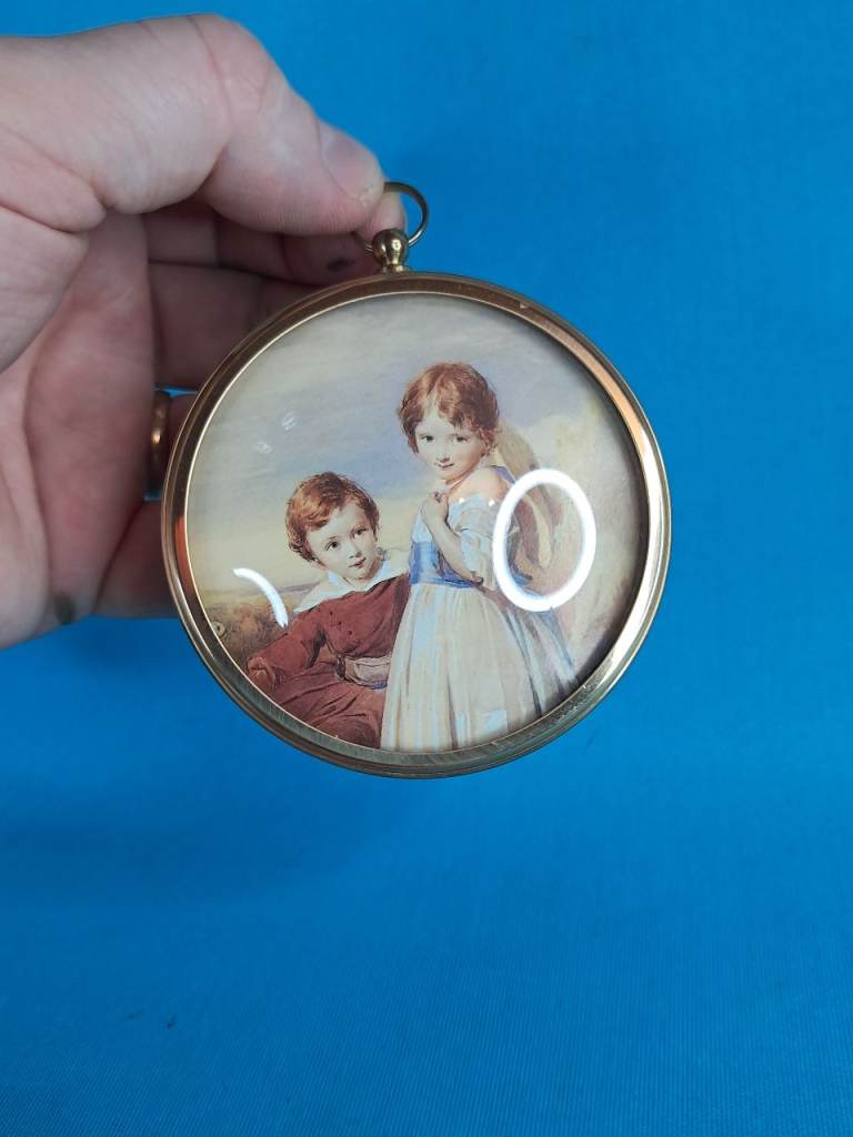 Vintage World of Peter Bates 'Swimburne Children' Miniature Cameo Gallery Wall. Watercolour.