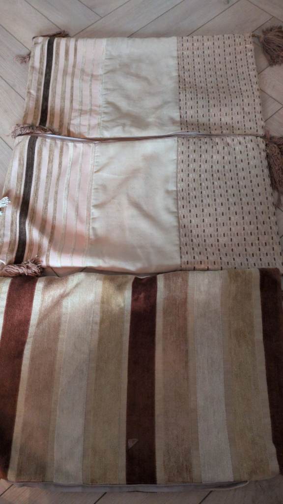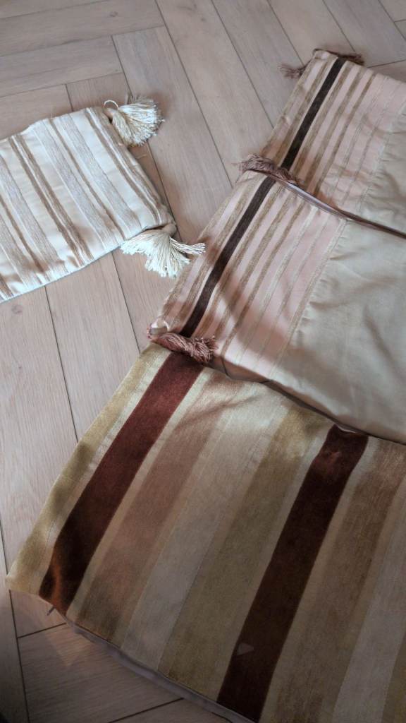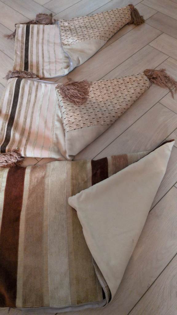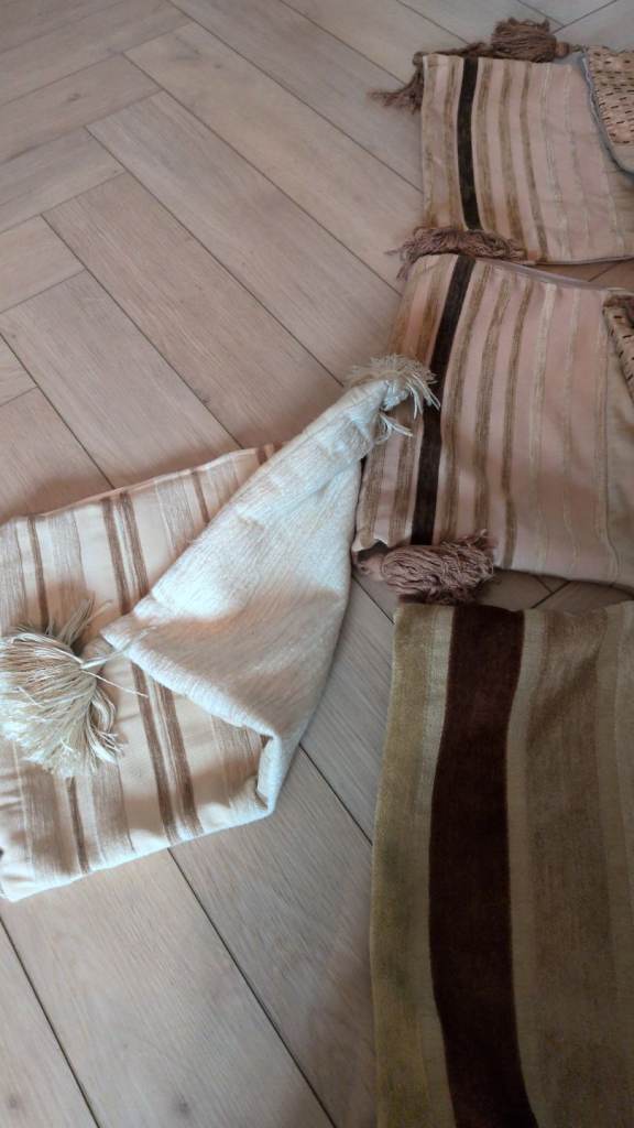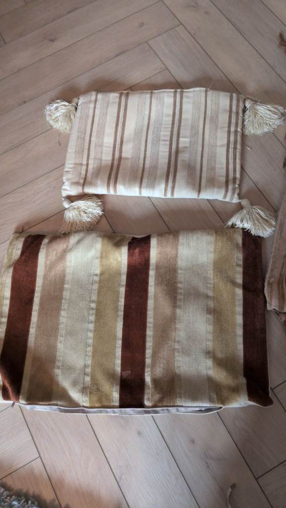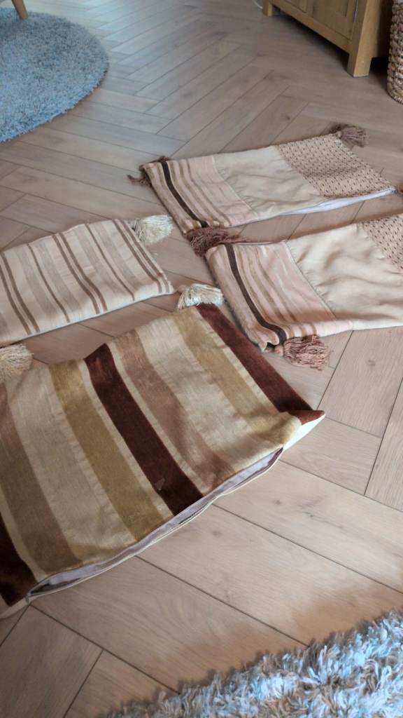 4 mix'n'match beige cushion covers from Dunelm. Three are 57cm x 37cm and one is 42cm x 30cm. All excellent condition and from our non-smoking, non-vaping home. Relatively new, but a change of decor now means they can find a new home.