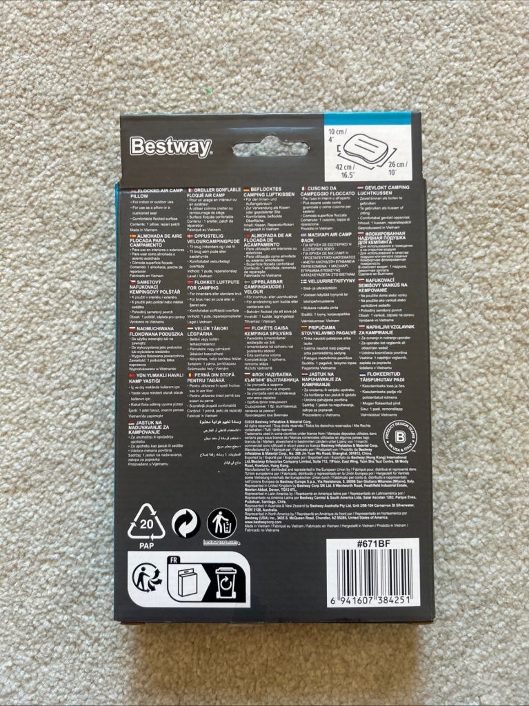 Bestway Soft Top Inflatable Flocked Air Camp Pillow Neck Cushion BLUE Brand New