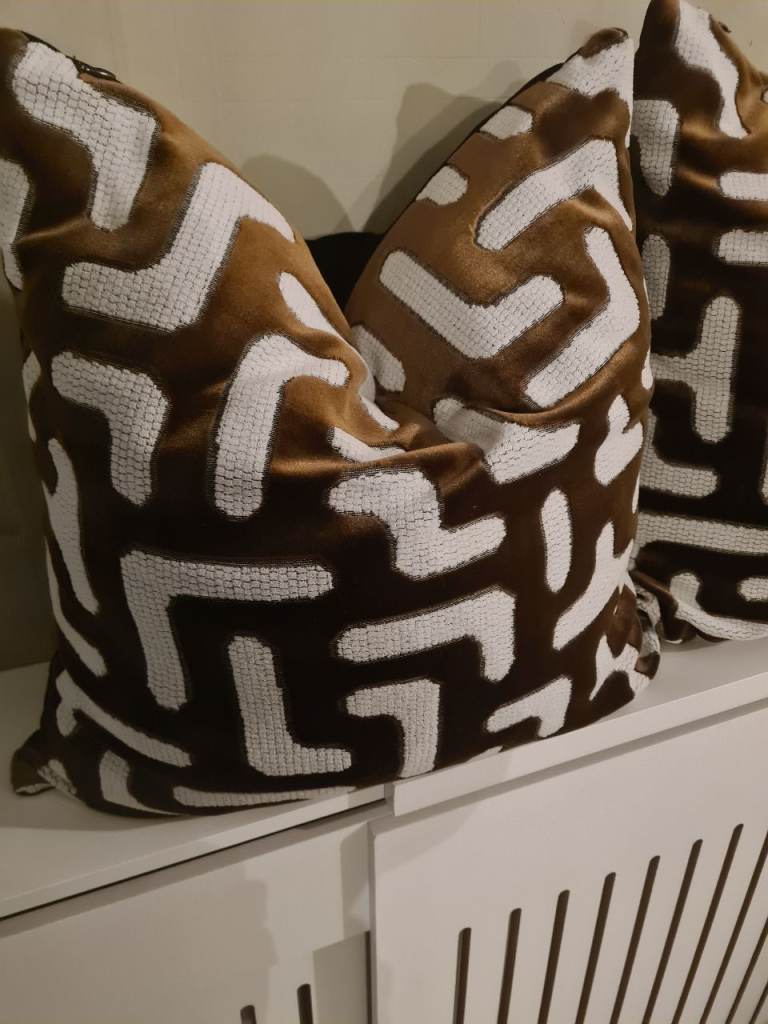 Bronze abstract cushions x 3