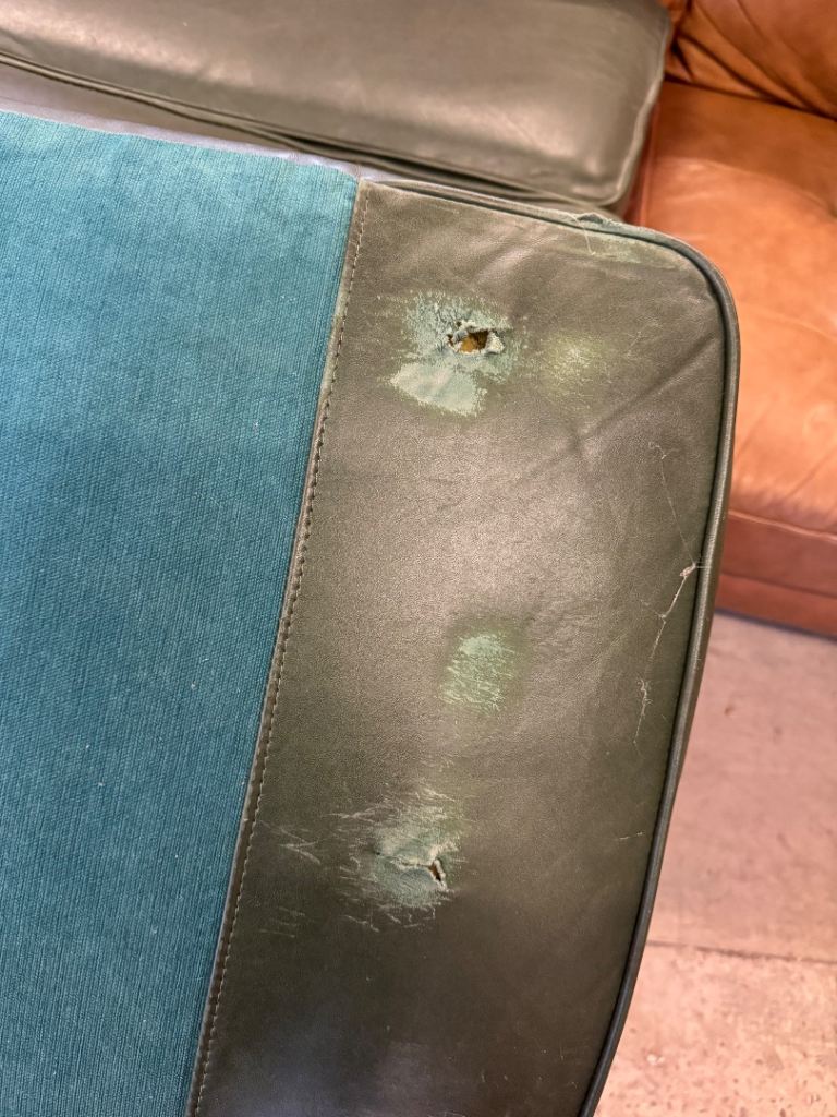Pre owned please see all pictures for small rip underneath cushions