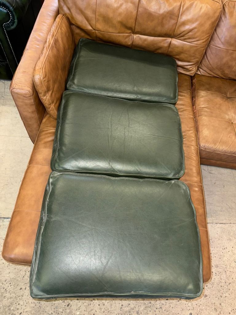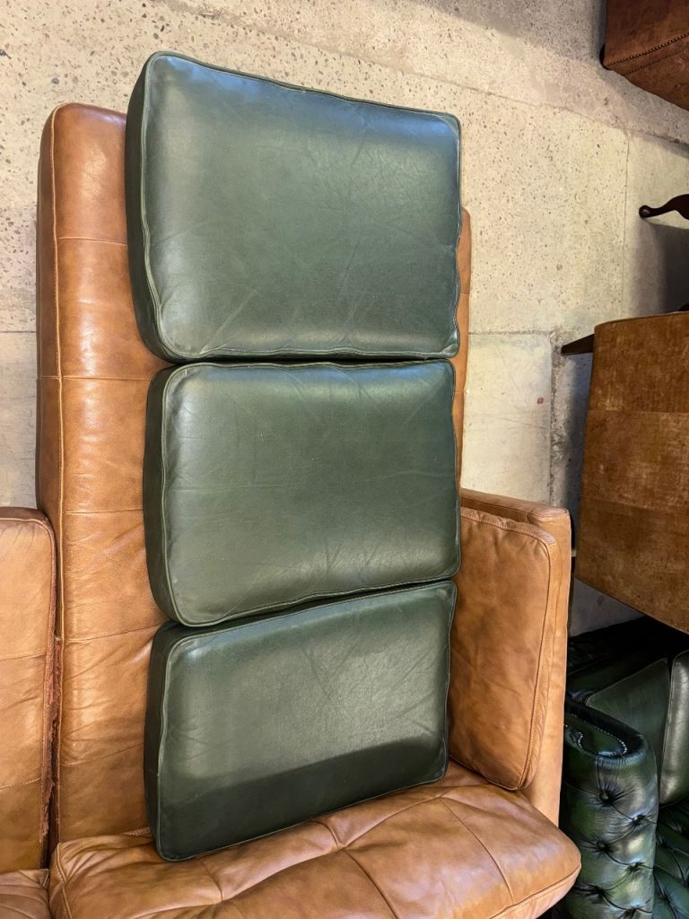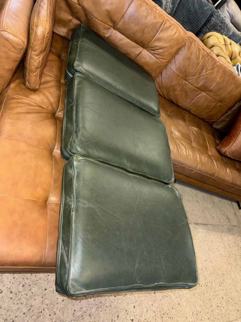 Chesterfield green real leather cushions x3