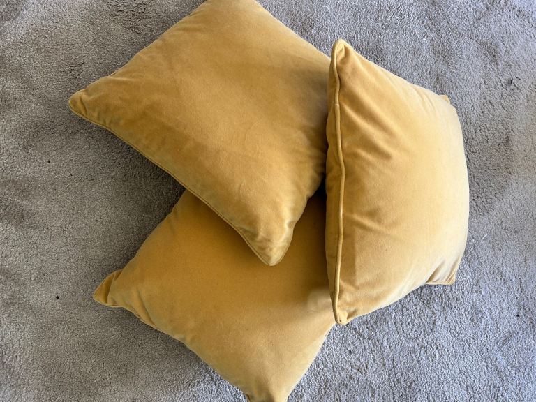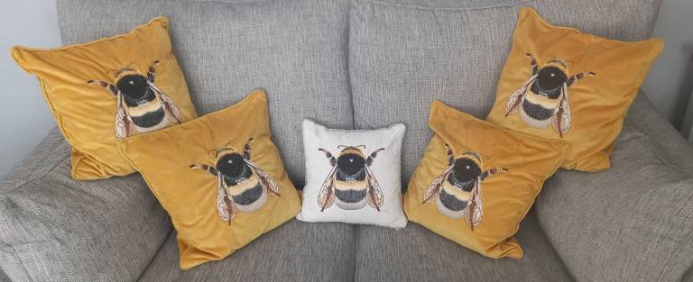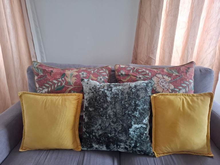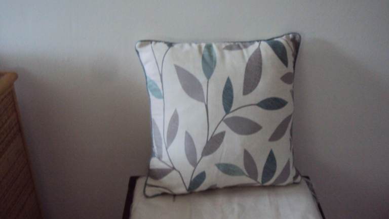 The Fusion Beechwood Duck Egg cushion (new) with leaf pattern front and back, with tag, 100% cotton, dimensions 43 x 43cms. With zip so you can have the cover cleaned. £10 cash. Collect in London NW11 halfway between Golders Green and Finchley Central tube stations, buses a 3 min walk on Finchley Road (nearest bus stop post code is NW11 6AG). Free to park outside.