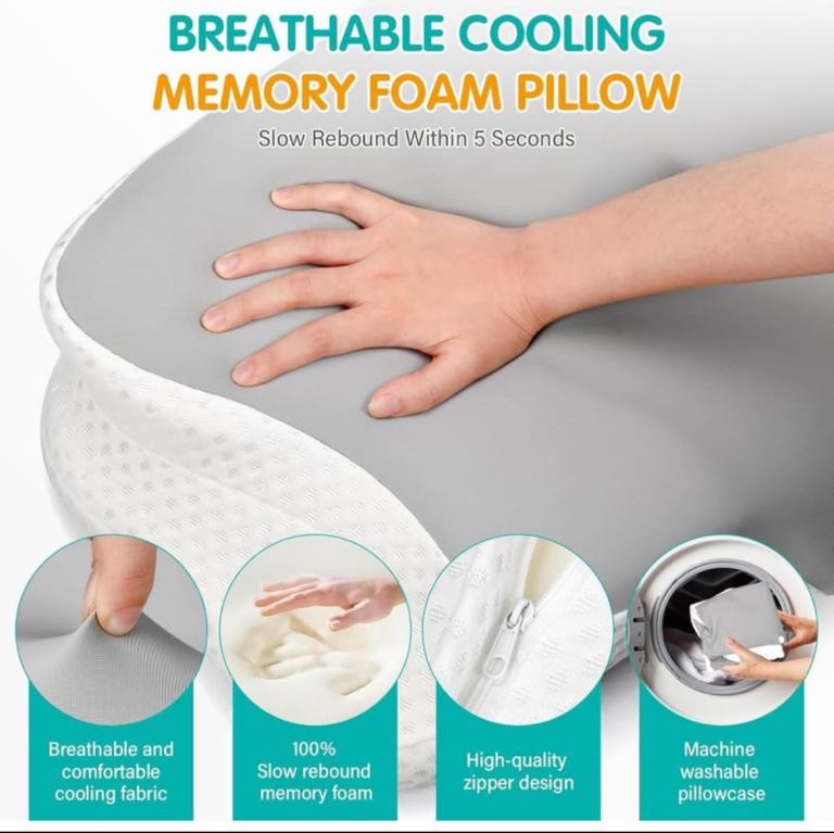 【High-Quality Memory Foam Pillow】The neck pillow uses a 3D fiber pillowcase that allows heat to escape and fresh air to circulate. You can rest assured that you'll have a sweet and refreshing dream! If you're sensitive to odors and want a natural, memory foam pillow, the neck pillow is the solution! Our pillow core is made of breathable, non-toxic, and memory foam. NOTE: The pillow cover is machine washable, but do not wash the memory foam core.