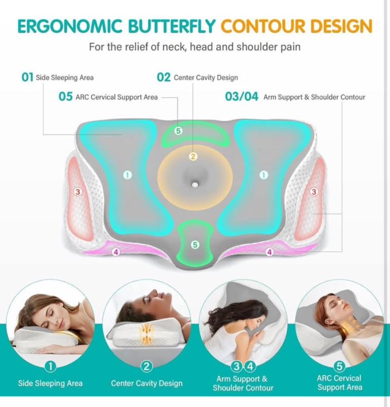 【2-in-1 Ergonomic Memory Foam Pillow】Designed with meticulous precision, this innovative neck pillow features five unique contour zones, specially designed to match the natural curvature of your body. Each contour zone works harmoniously to treat targeted pressure points. It provides complete support for your neck, shoulders, and arms, effectively relieving neck pain and muscle stiffness. You'll no longer have to compromise on the quality of your rest.