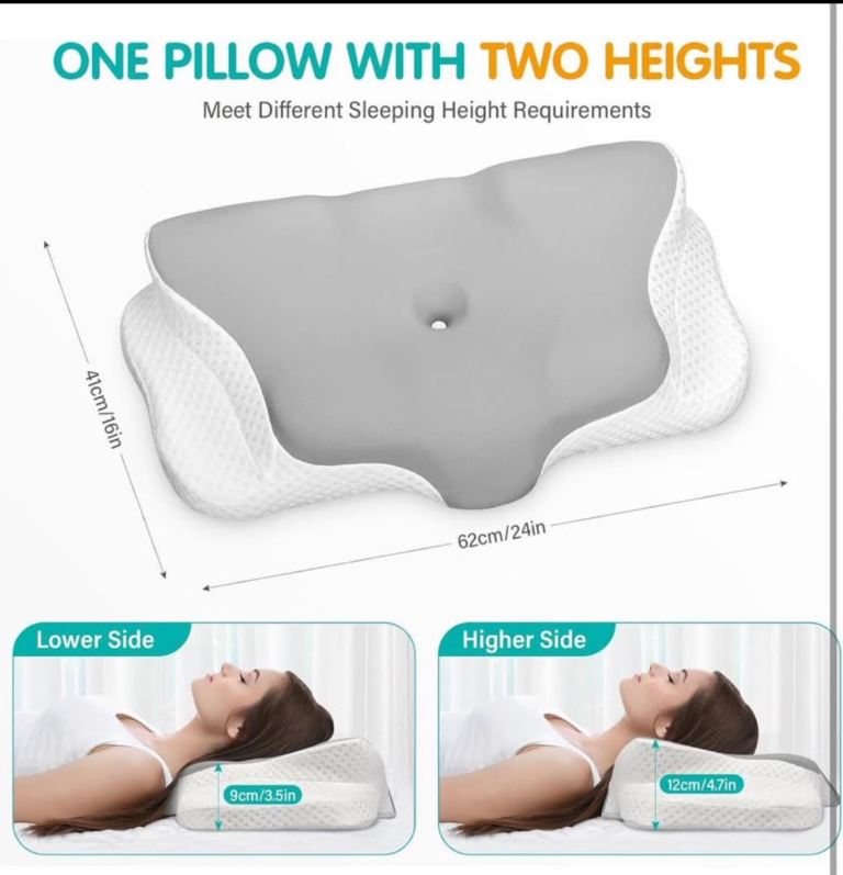 【Two Sleeping Heights】If you still can't find the right pillow height, our neck pillows have two different heights (4.9"" and 3.7"") on both sides for you to choose from. You can achieve a better contour by rotating the memory foam pillow 180 degrees, and find the perfect sleeping height with our bed pillows! This ergonomic neck pillow is suitable for all sleeping positions, such as stomach, back, and side.