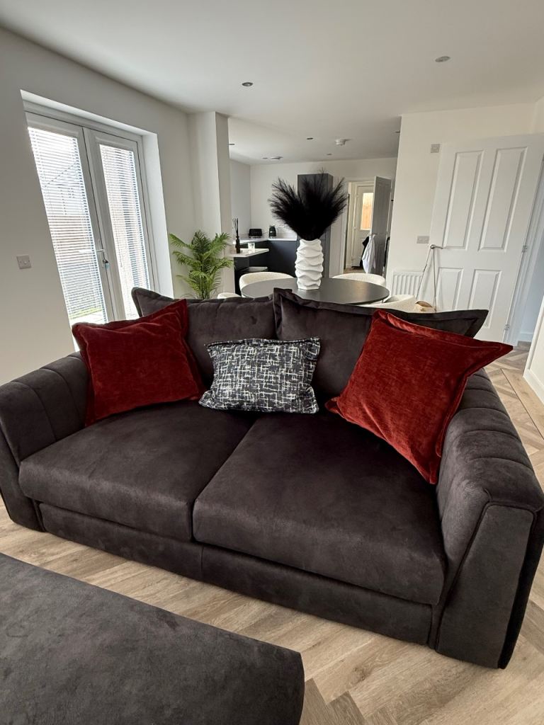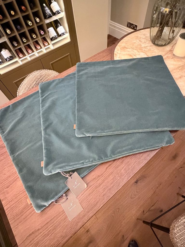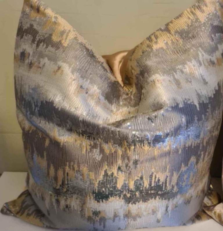Posting for 2+ monthsGold grey dusk designer cushions x 2 48x48;