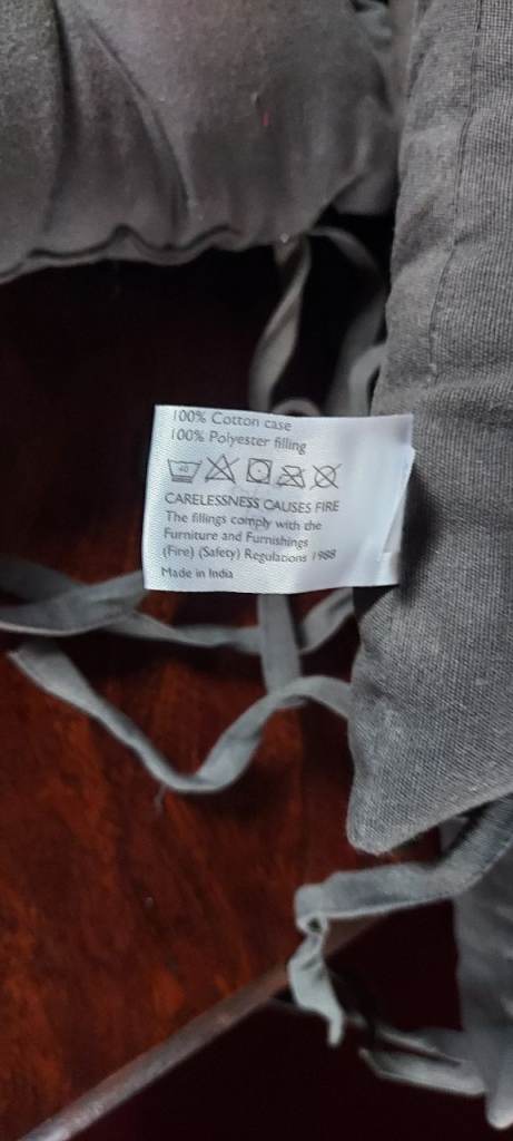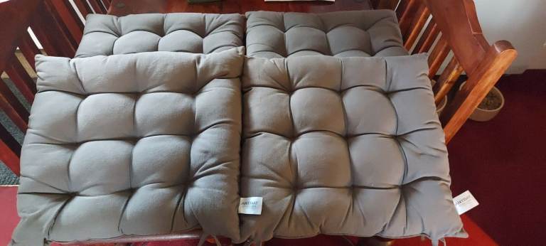 4 X dining chair padded seat cushions. Hardly used, bought from John Lewis. All have ties to secure to chairs.