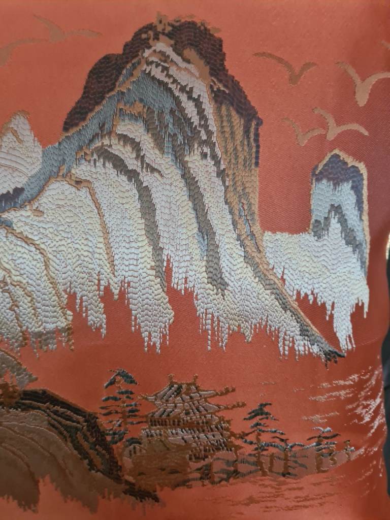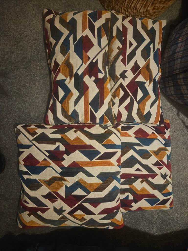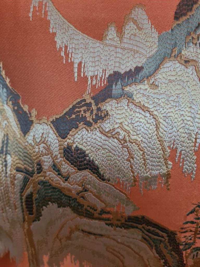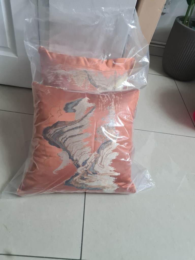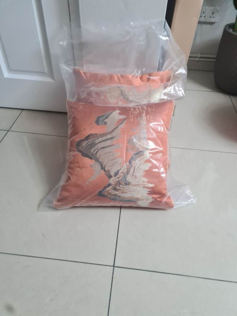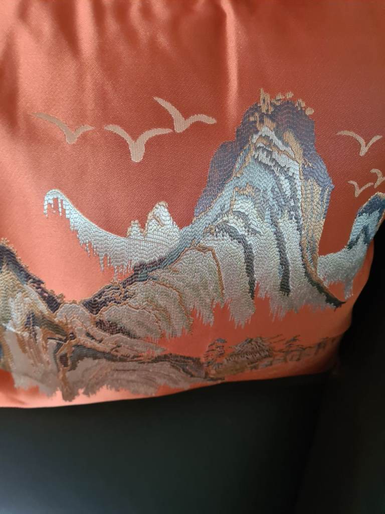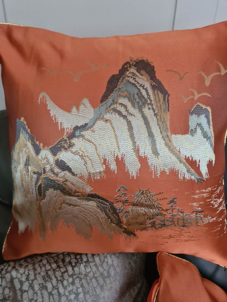 Orange highly decorative designer inspired cushions with metallic oriental print