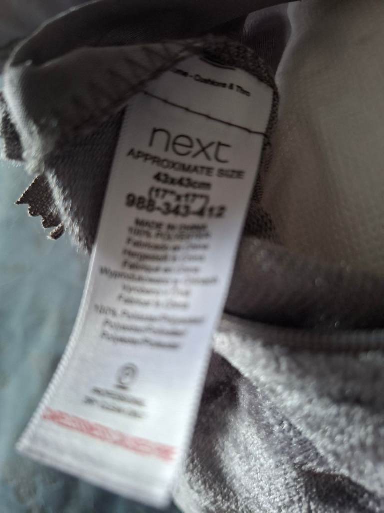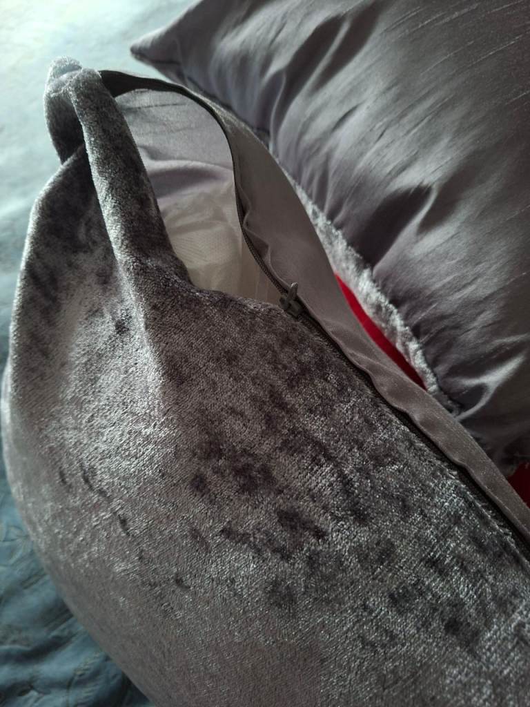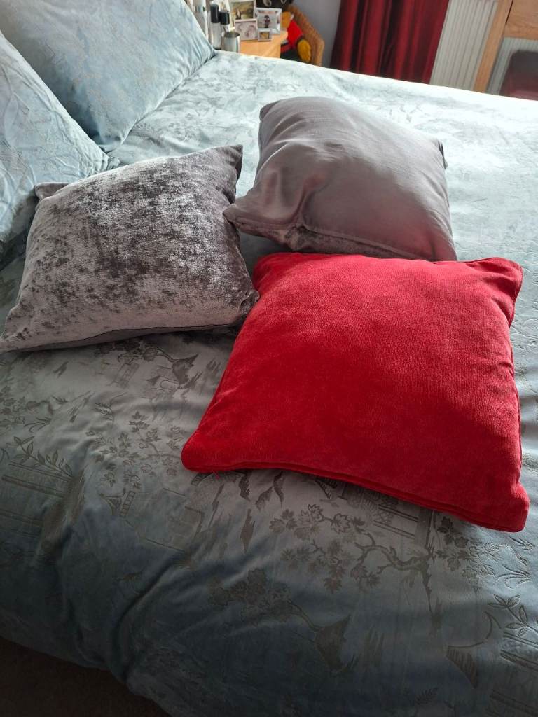 3 Next cushions. 1 red and 2 silver. Only used for show on my bed.