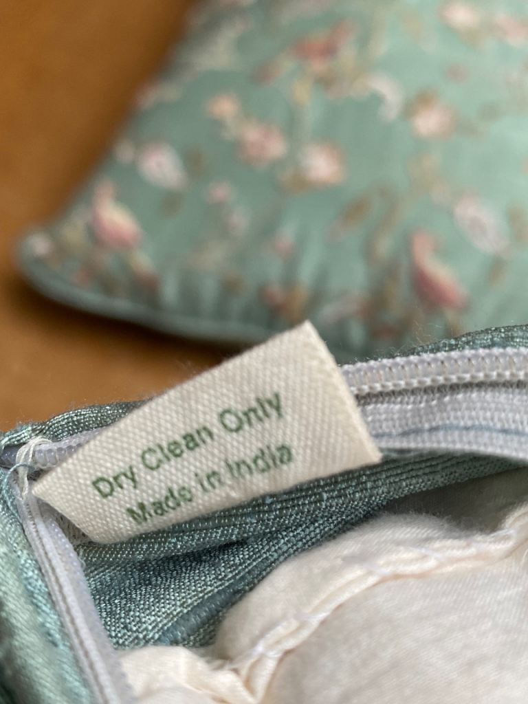 The ‘Jonelle’ brand was used by John Lewis from the mid 1950s through to the early 2000s when it was phased out. These cushions most likely date to the late 1980s.