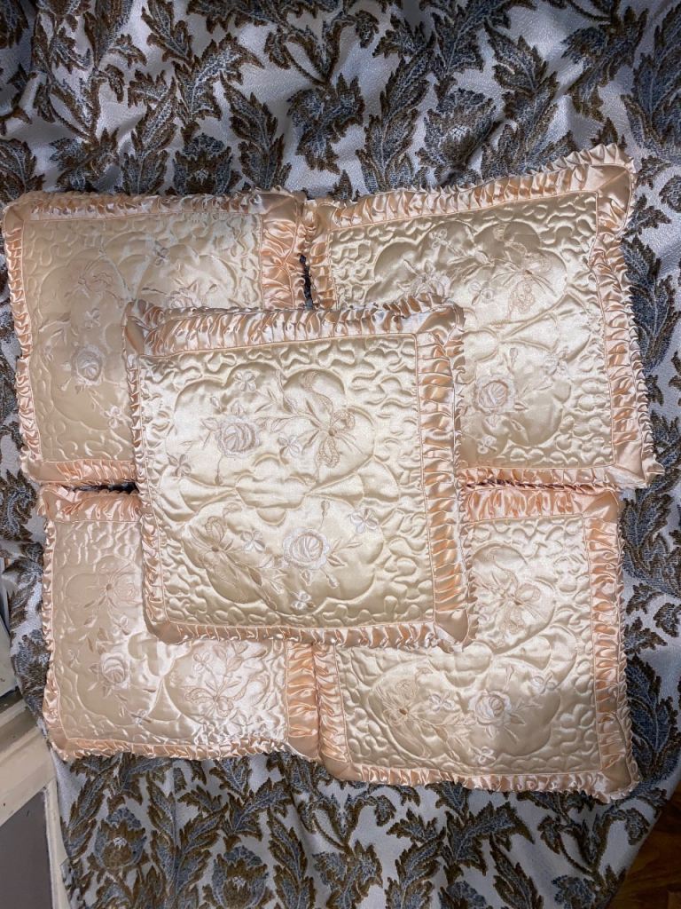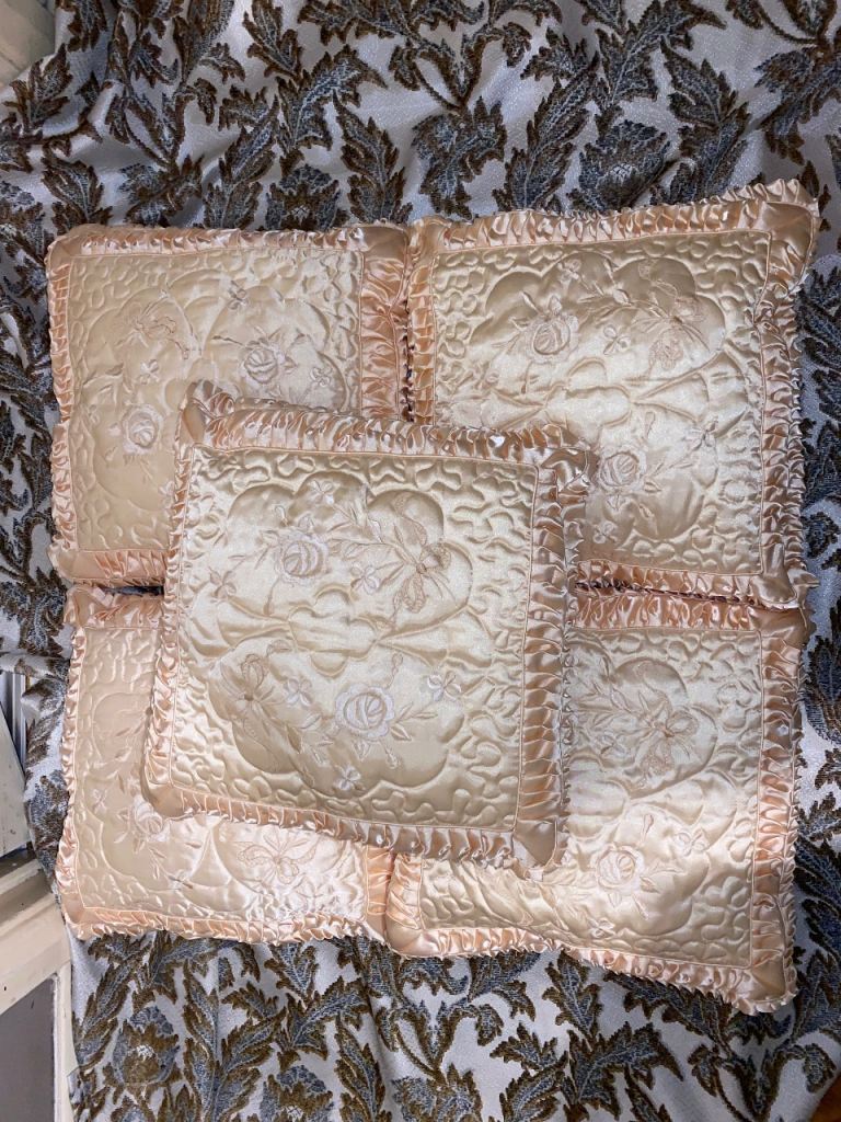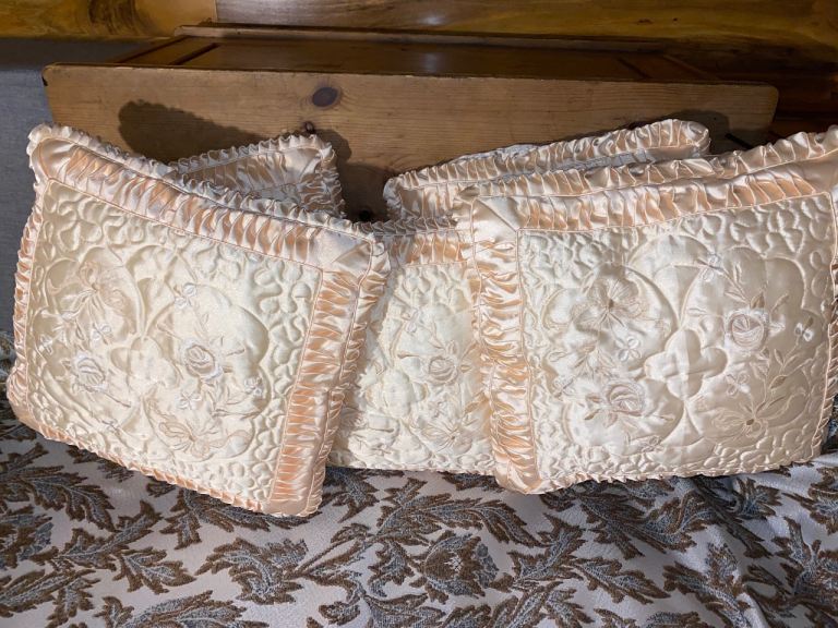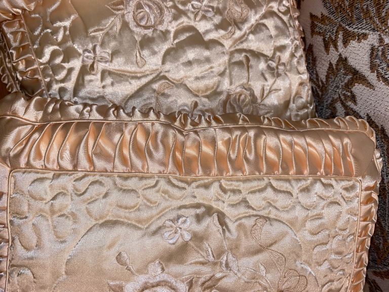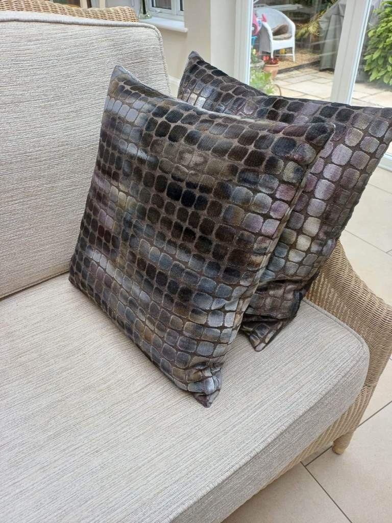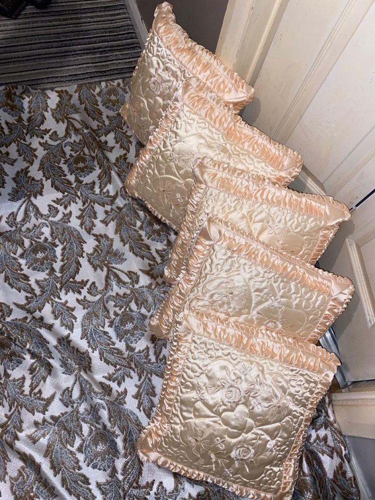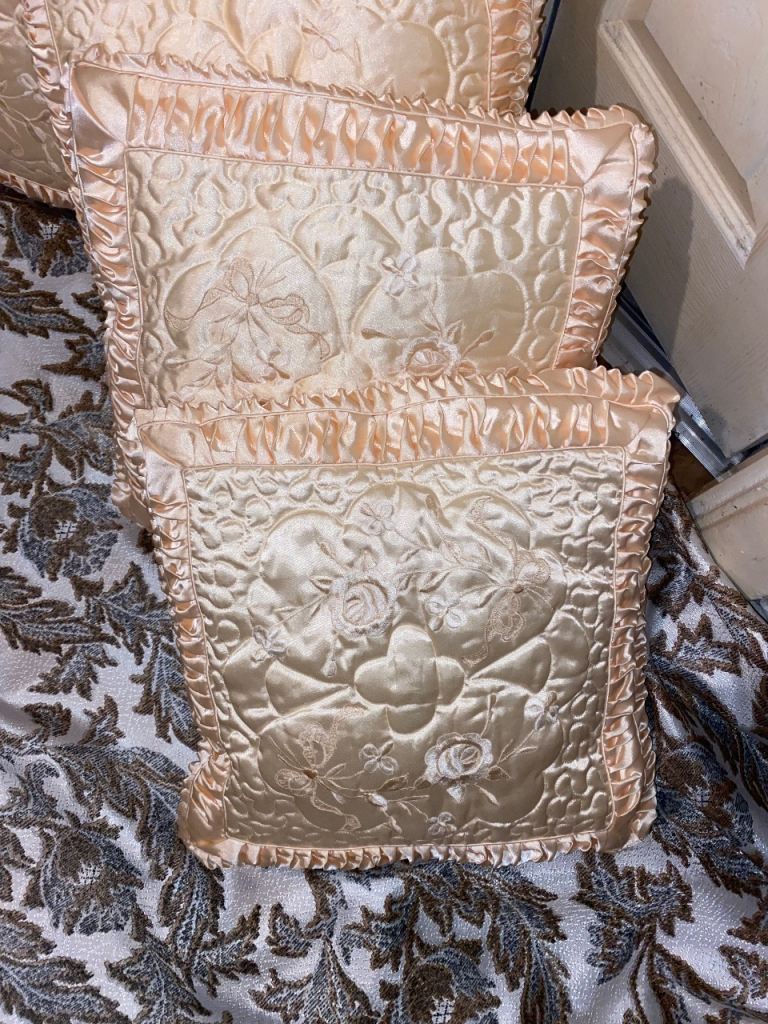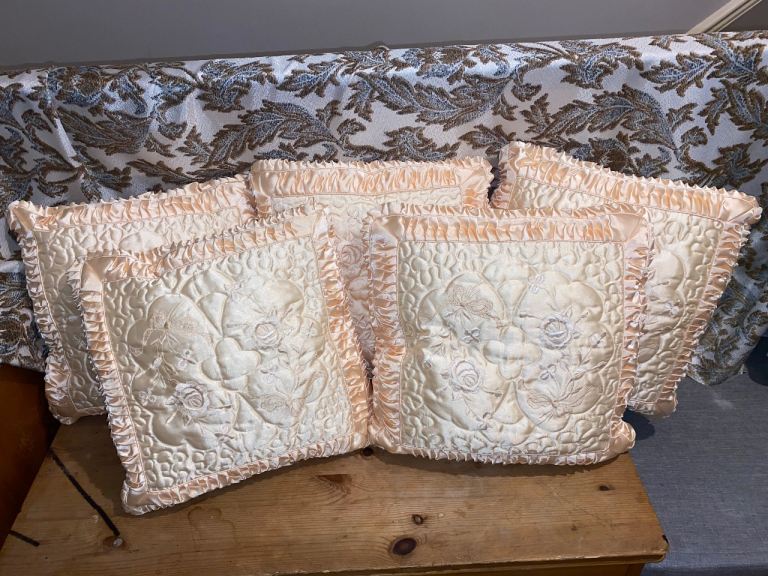 Beautiful embroidery/ frilled edge cushions in perfect brand new condition.