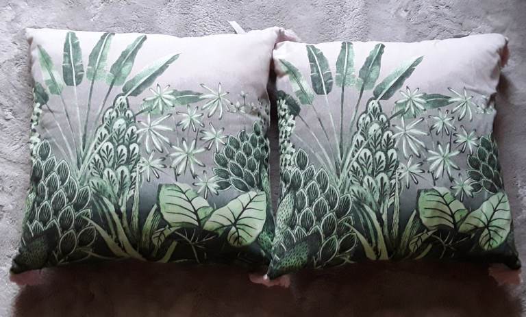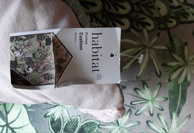 Two gorgeous brand new with tags , Habitat 50 x 50 cm cushions with tropical pattern. Sold as seen and stored in a smoke and pet free environment.