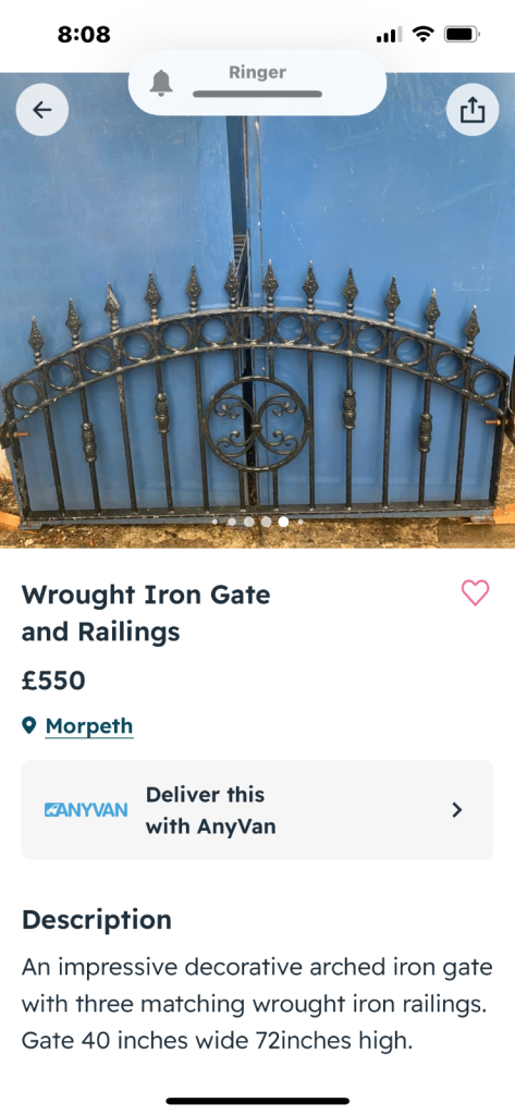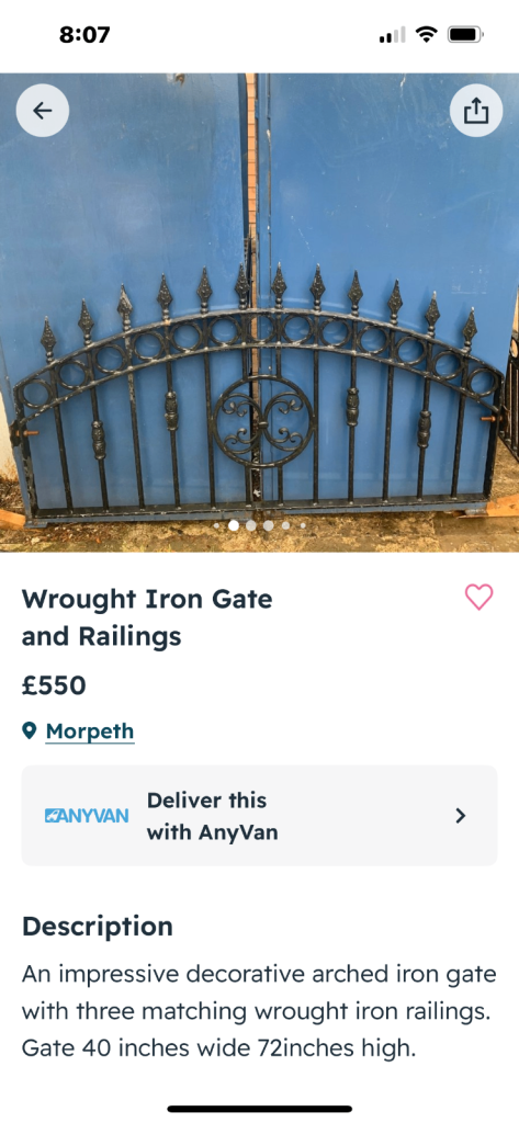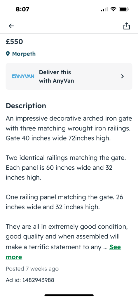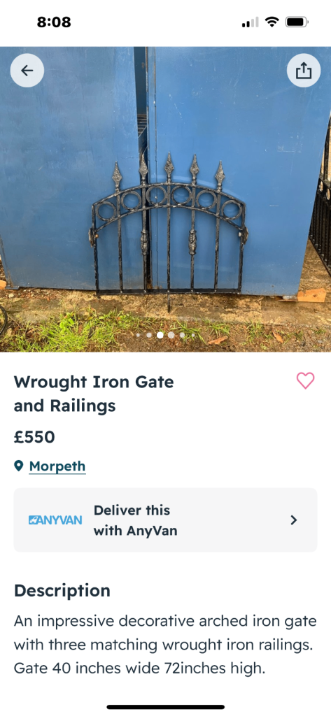 Lovely ornate gate and matching railings. See sizes in last photo.