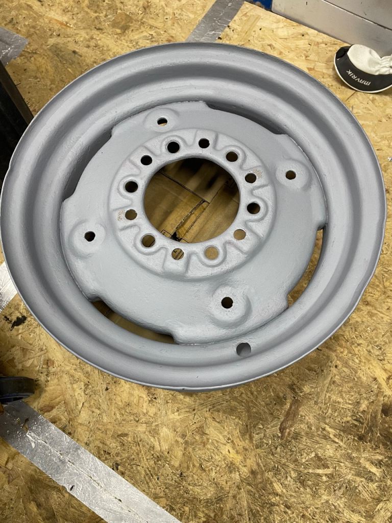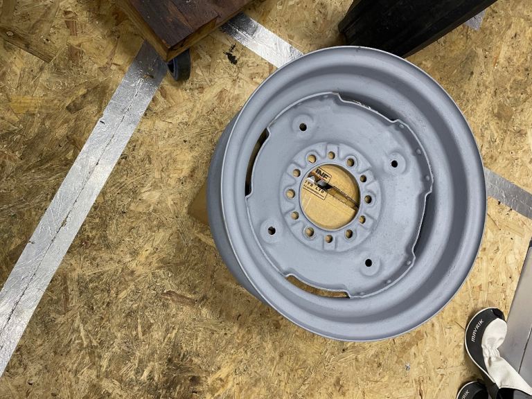 Pair of front wheels that take a 600-16 tyre. Wheels have been sandblasted and 1 coat of primer. Wheels are in very good condition. Will suit mf 35, 135 and fordson Dexter.