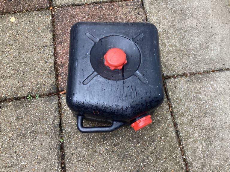 Like new not been used a hard plastic double cap Fuel draining oil or fuel can capacity 5L perfect for working on cars or other vehicles .