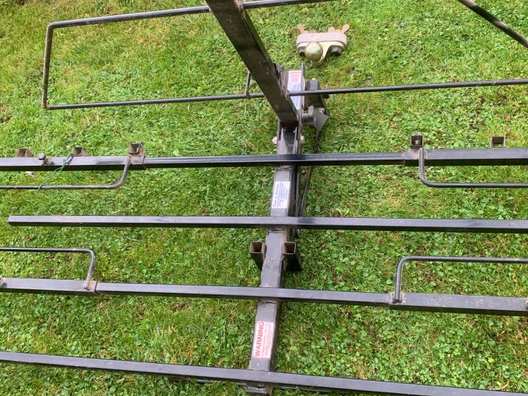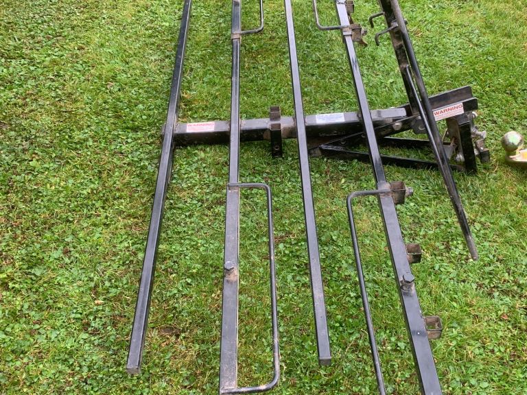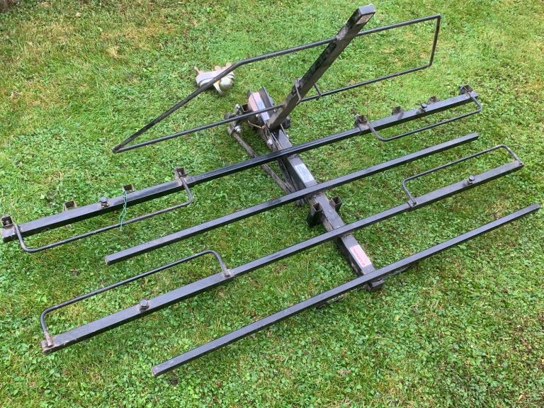 Carrier fits onto conventional tow ball. Suitable for upto 3 bikes or small mobility scooter, hay bales etc. Folds up when not in use. Heavy duty Buyer collects