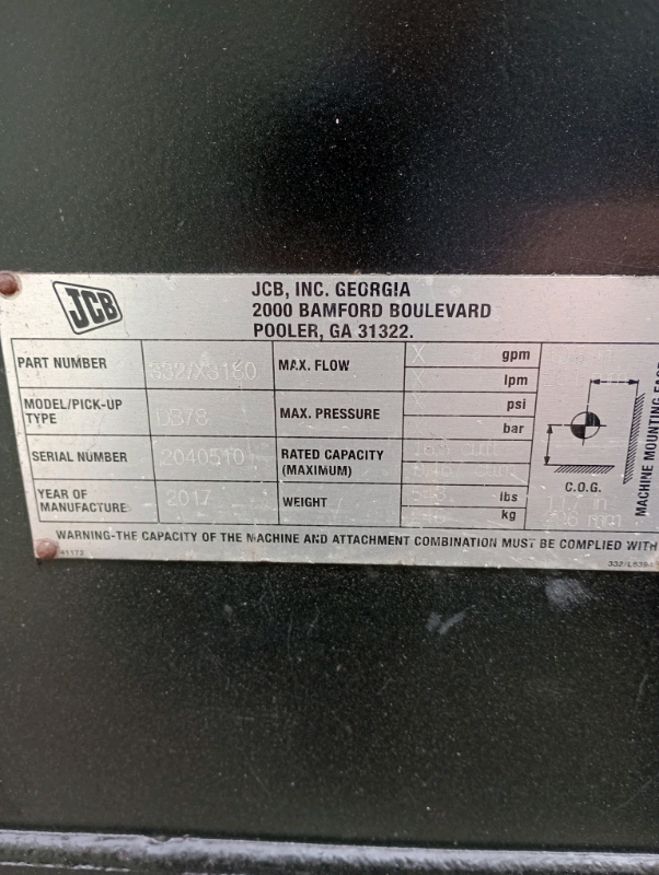 JCB skid steer 78 inch wide bucket