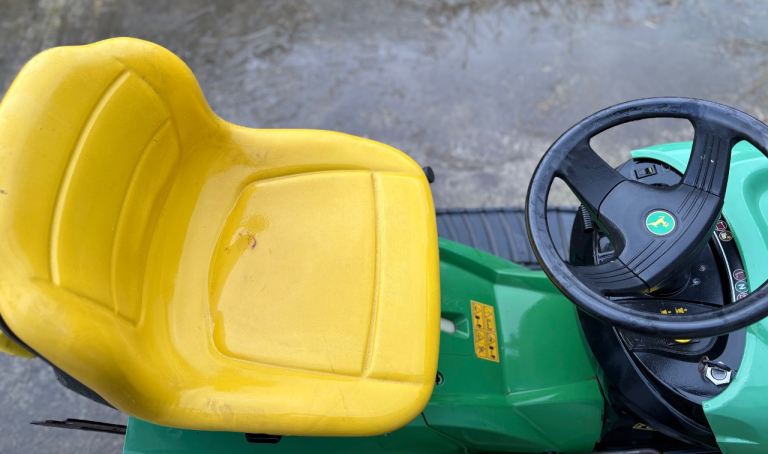 The mower deck has been removed, so it can be used as a small tractor, trailer puller, or general run-around.