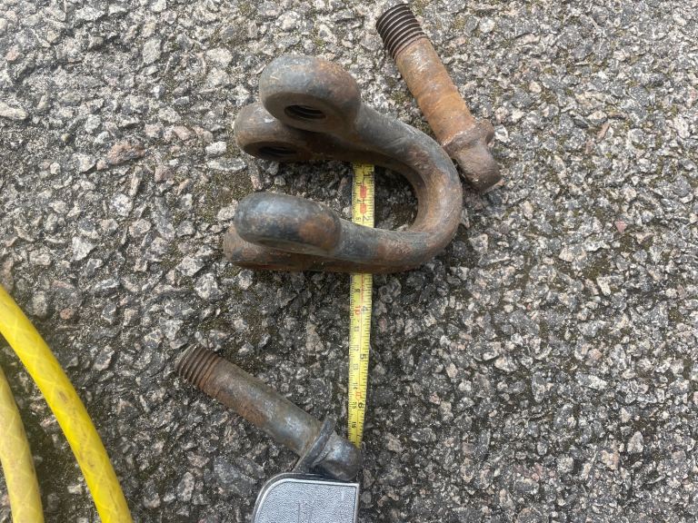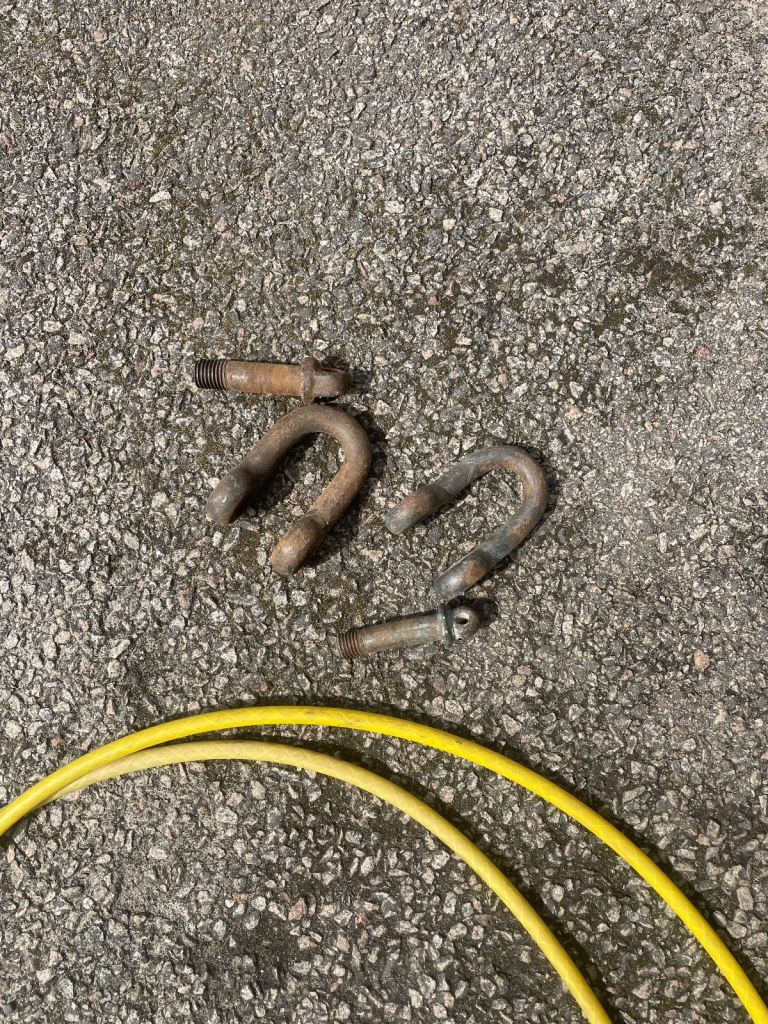 Wire rope length 14’ with 2 shackles half inch thick, no hairy bits of wire sticking out