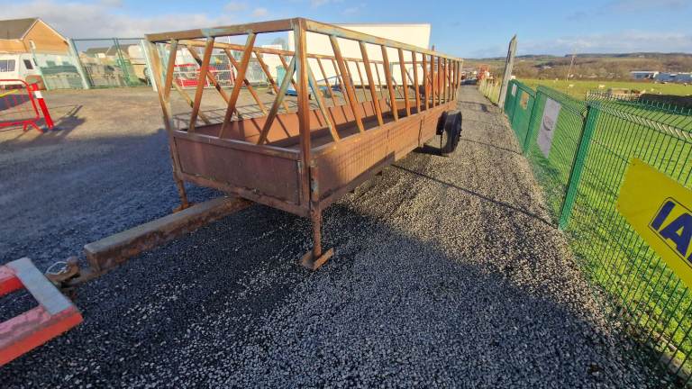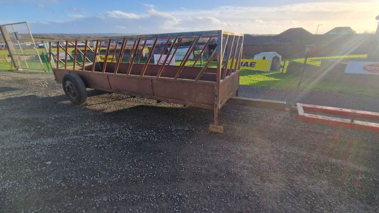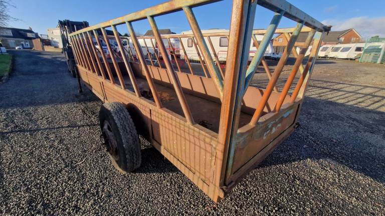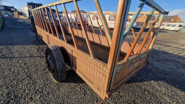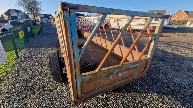 Tractor 15ft cattle feed trailer , has removable rear gate , front prop stand , full steel floor , wheels have corrosion loading available £525 plus vat