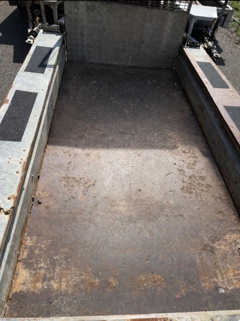 This is a strong and reliable trailer, ideal for transporting mini diggers, dumpers, and other plant machinery. It has a solid steel floor and a durable galvanised chassis, built to last.