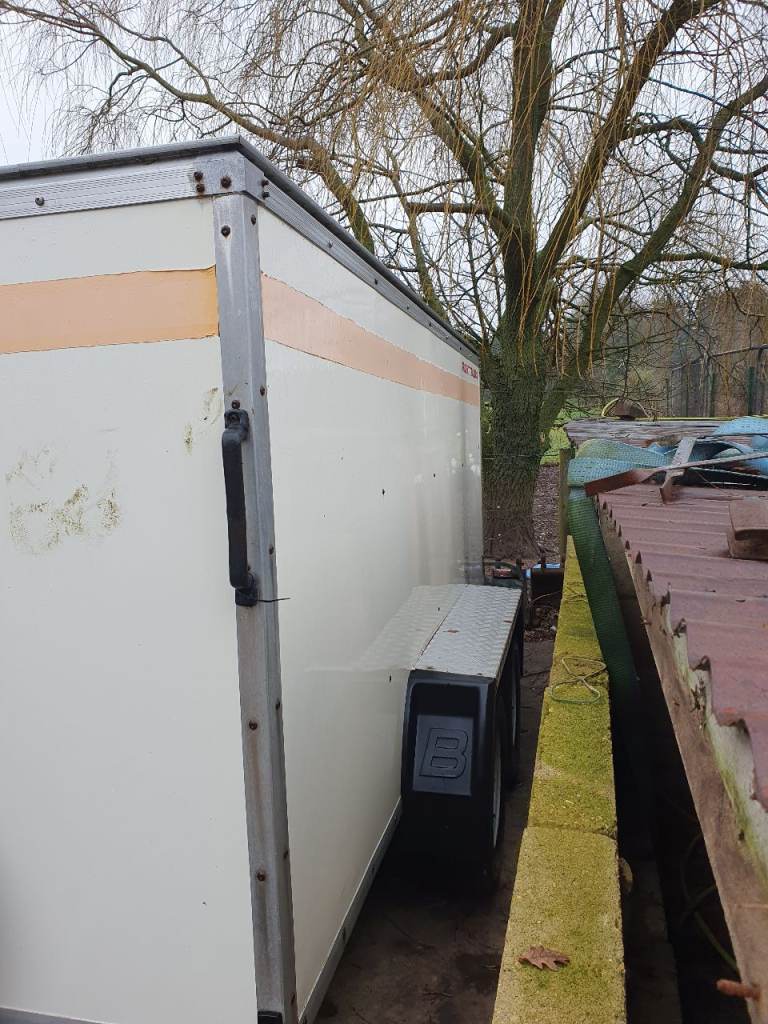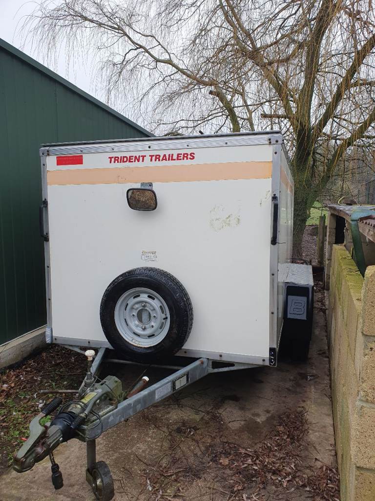 Double wheel base trailer used for storage for past 5 years good condition width 1,575 metres hight 1,778 length with towbar 4,267 metres brakes and tyres including spare good condition roller shutter door ready to go