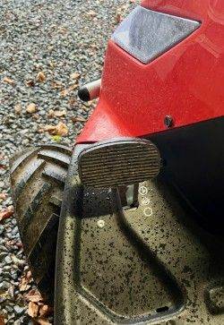 Cutting width: 92 cm (reinforced steel deck/spring loaded discharge chute)
