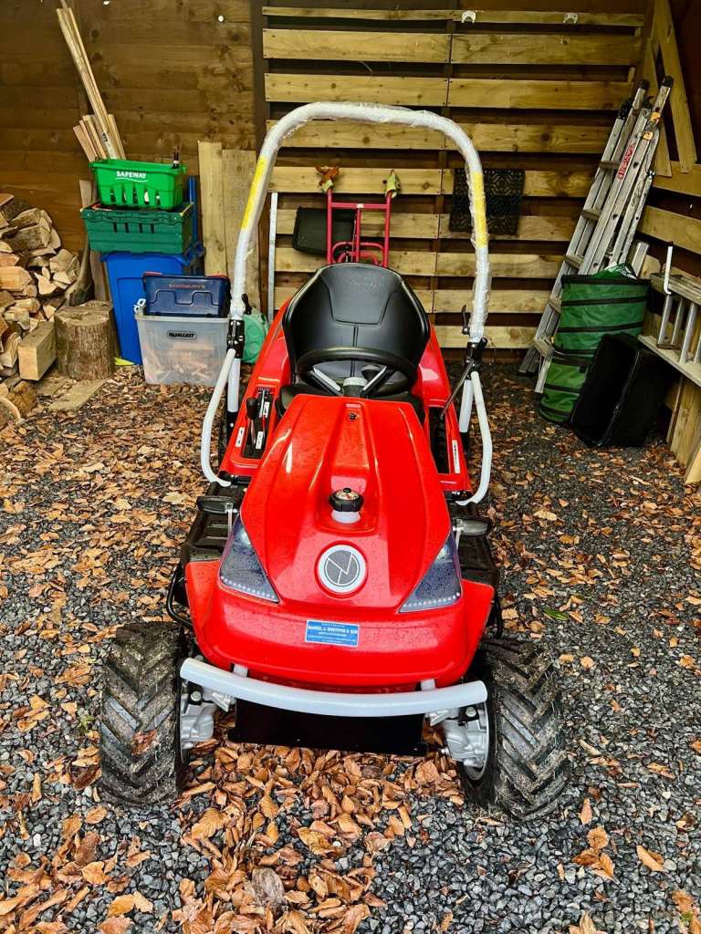 A commercial lawn tractor, able to manage sloped ground up to 20 degrees, in a variety of conditions (including hilly/terraced landscapes), with brambles, thick reeds etc. This machine can cope well with cutting anything from your formal lawn to rough meadows.