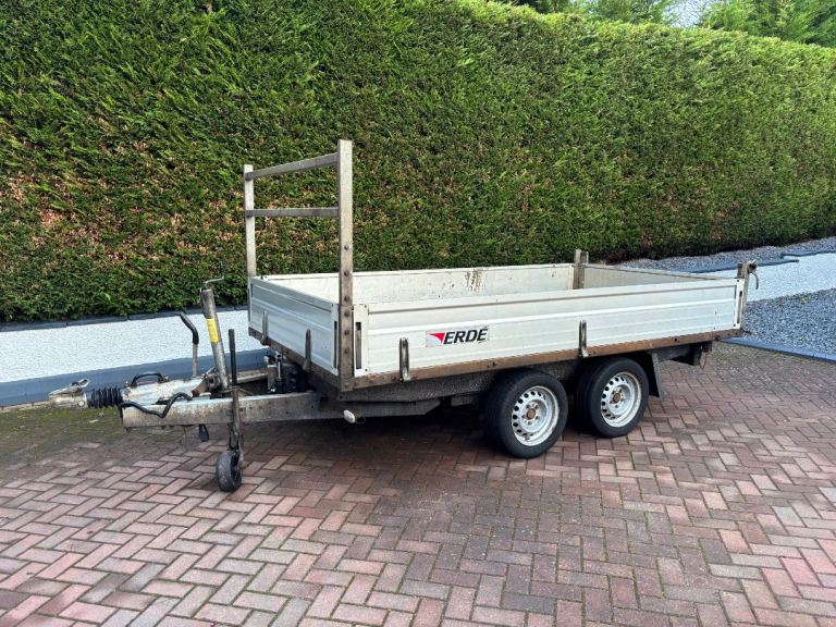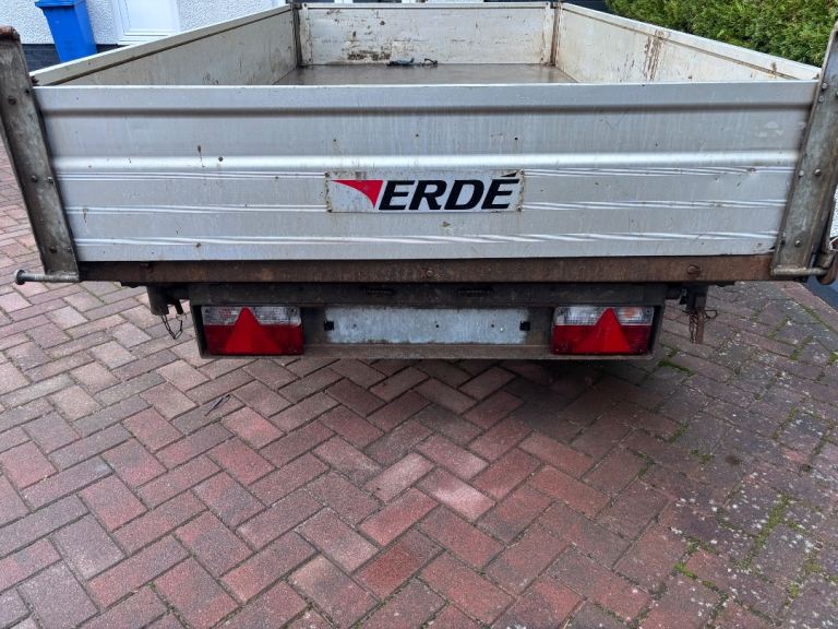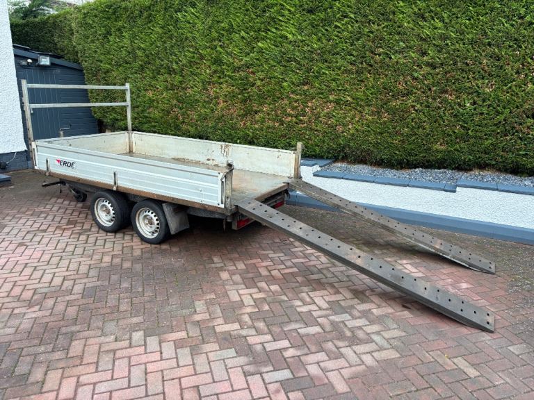 A very rare and high quality Erde F-21910 3500kg flatbed electric tipper trailer- WITH ramps and a 2715kg payload!!