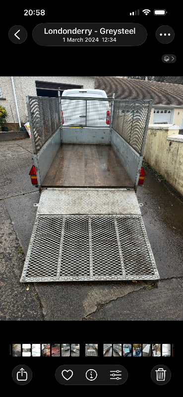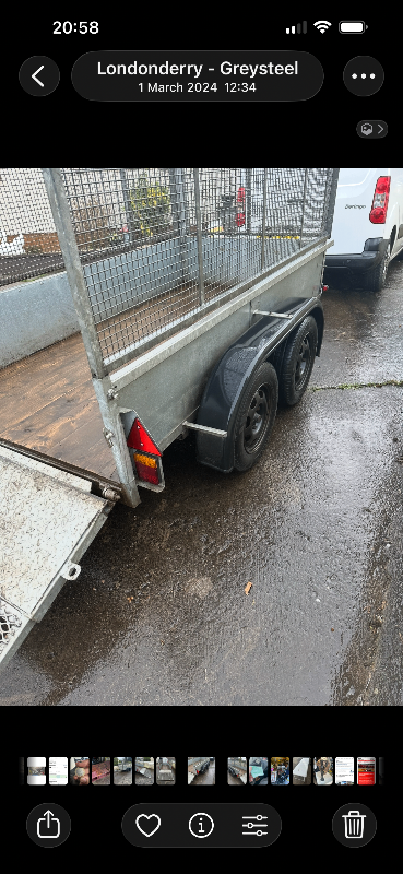 Here we have a fully galvanised trailer in great condition. It is slightly over 8x4. It has a wood floor and a very strong tailgate which can be lifted up and down easily. It also has a hand winch installed to help load heavy items